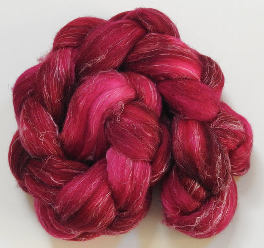Mulberry (5.6 oz) - Batt in a Braid #65 - Rambouillet/ Cormo / Sari silk/ Tussah silk (40/25/25/10)