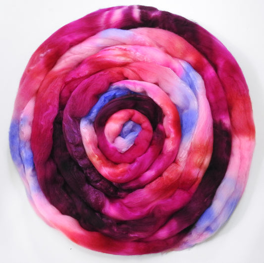 Blossom (5 oz) - Batt in a Braid #66 - Cormo/ Tussah Silk / Silk Slubs(60/25/15)