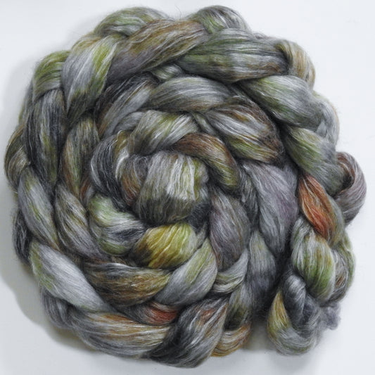 Nigella (5.5 oz) - Batt in a Braid #52- Wensleydale/ Mulberry silk/ Polwarth (60/25/15)