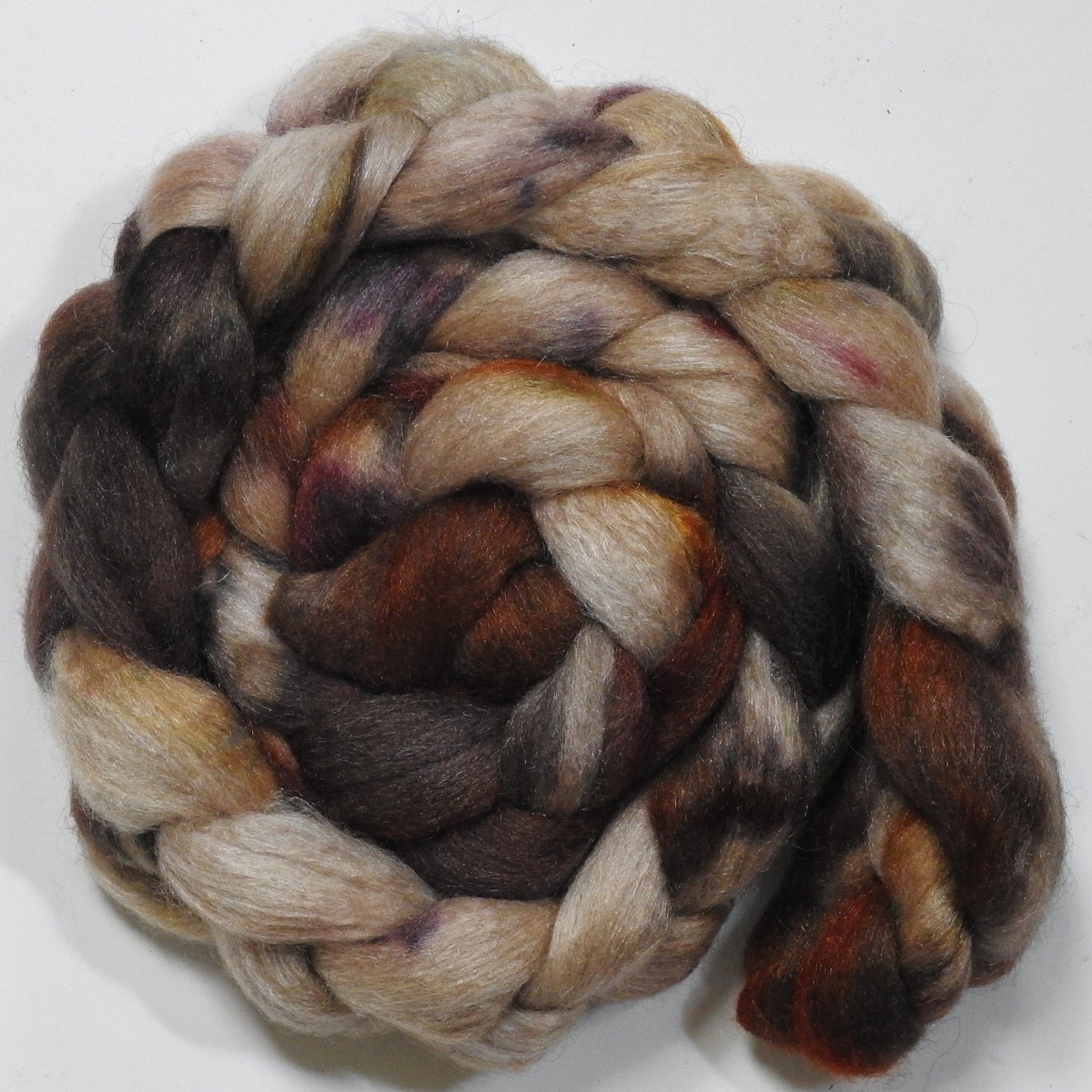 This is a rare blend of exotic and supremely soft Qiviut fiber with Merino and Tussah Silk! Qiviut fiber comes from the undercoat of the Alaskan Musk Ox, and is known for its exceptional warmth. This light and fluffy fiber ranges from 14-16 microns. It's very unusual to find it in combed top form, but this is a special product we've sourced from Ashenflock on Etsy, who had it custom milled.