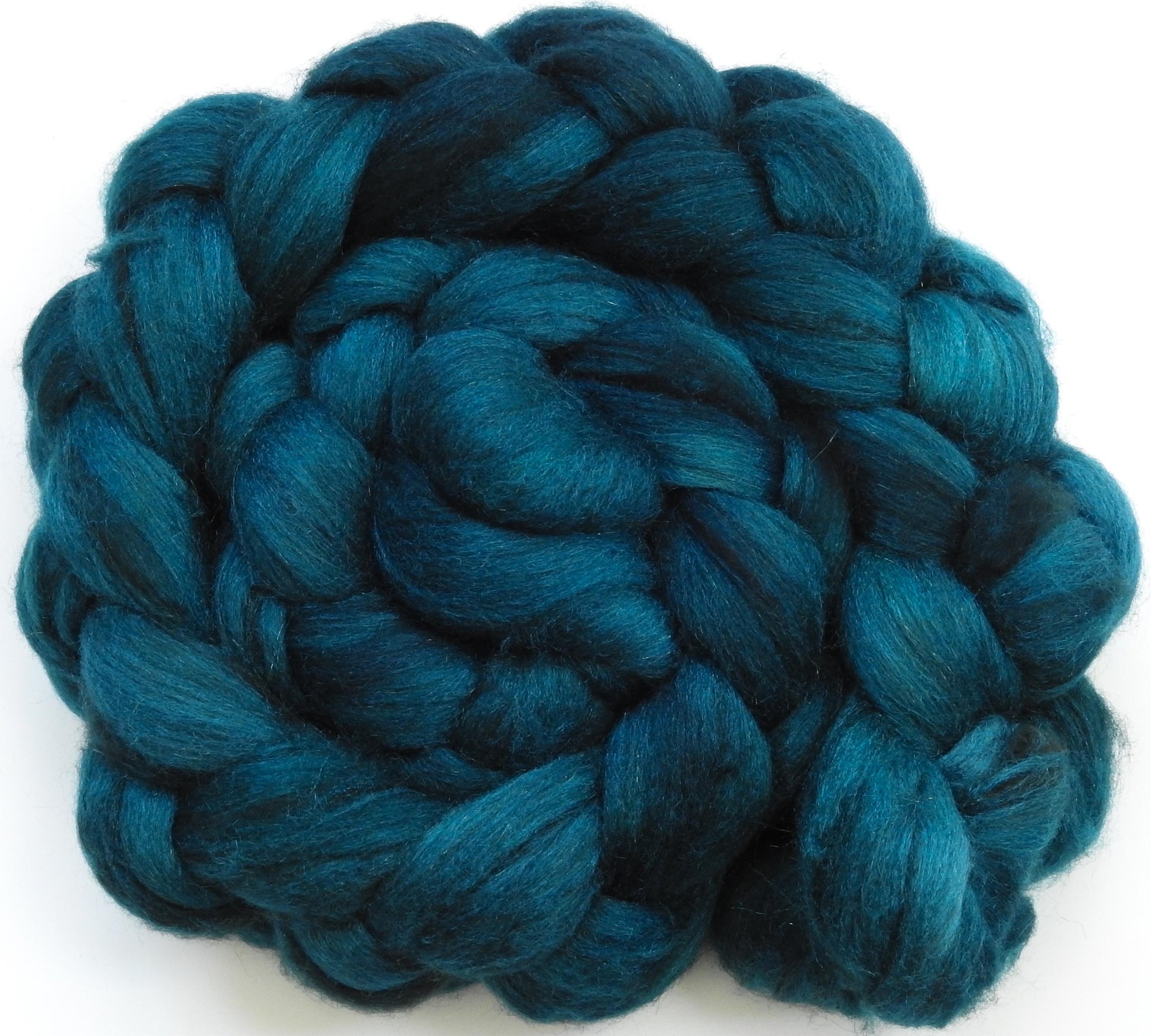 Blue Spruce -(5.2 oz) Batt in a Braid #53- YAK/ Tussah silk/ Superfine Merino/Gold Stellina(30/30/30/10)