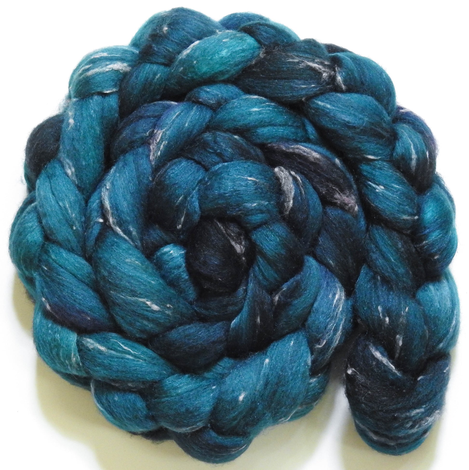 Blue Spruce (6 oz)- Batt in a Braid #49- Polwarth/Silk/ Tweed (50/25/25)