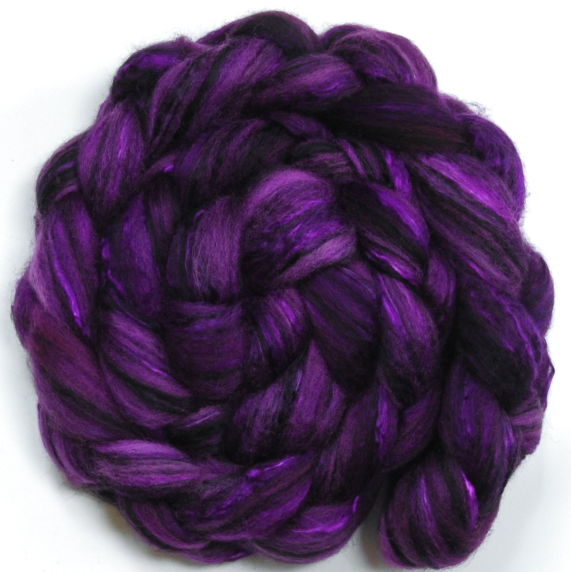 Byzantium (5.3 oz) - Batt in a Braid #55- Shetland/ Mulberry Silk/ Black Bamboo (50/25/25)