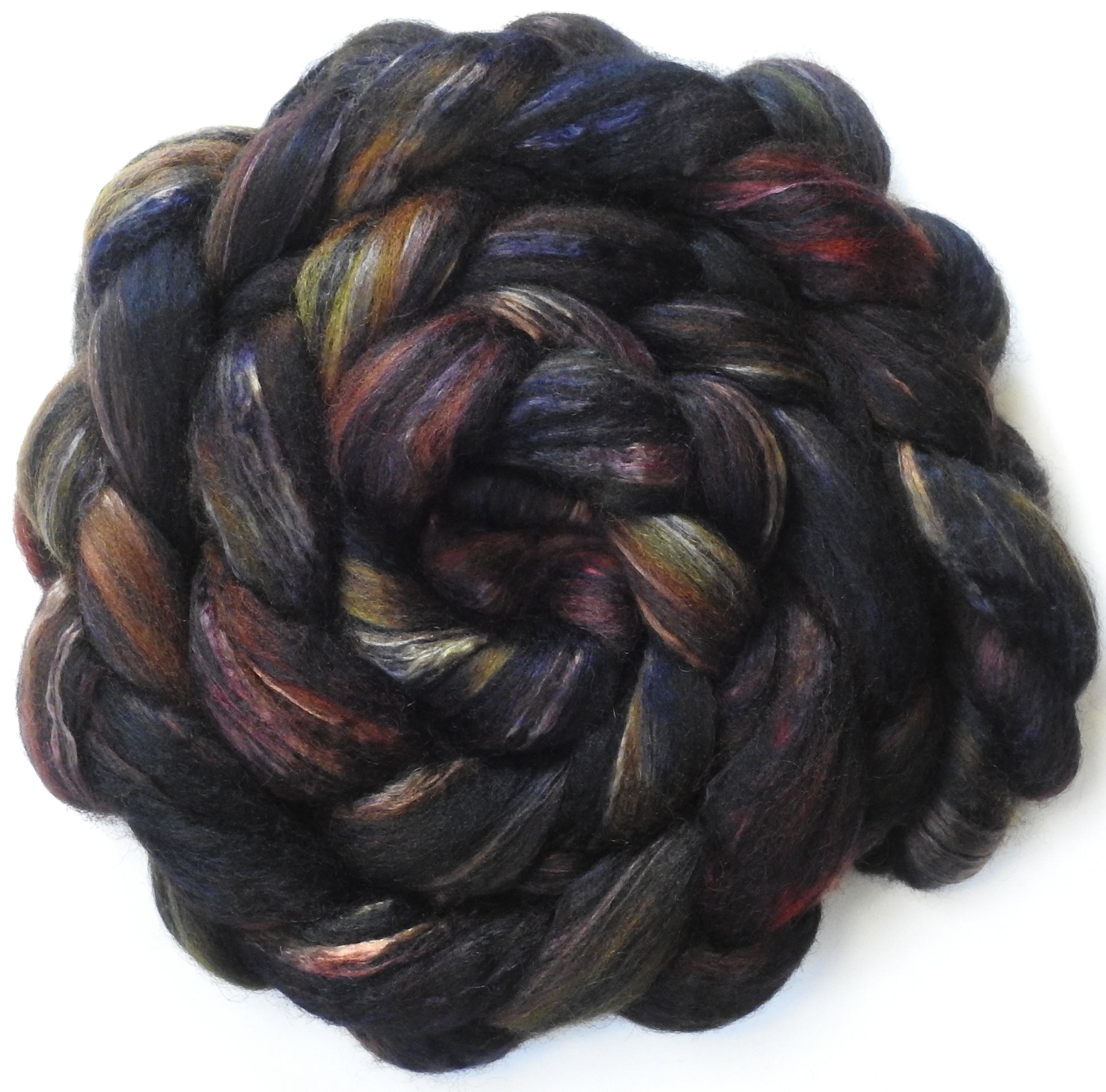 Chestnut (5.3 oz) - Batt in a Braid #55- Shetland/ Mulberry Silk/ Black Bamboo (50/25/25)