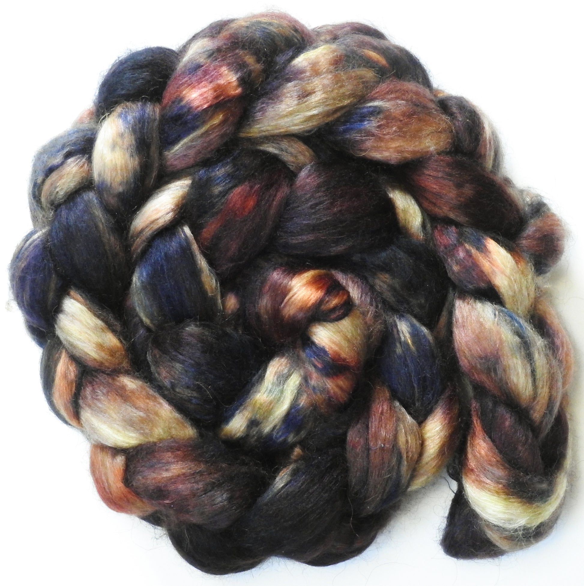 This is a super deluxe, incredibly soft and luxurious fiber. The natural fawn-colored camel is complemented by 50% tussah silk, which gives it a rich sheen. This fiber takes dye beautifully and will be a pleasure to wear next to the skin. It has been noted to be easier to spin this type of fiber with support spindles, due to the short staple of the camel, although the silk somewhat compensates for that by its longer staple length.