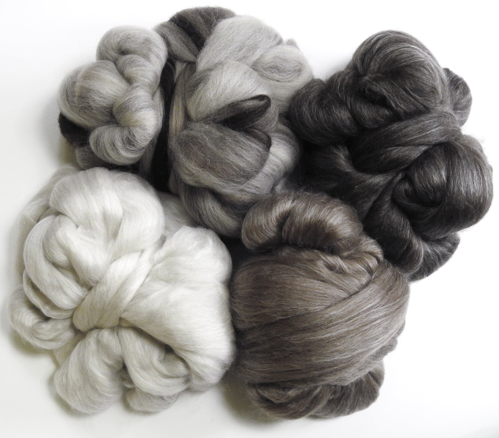 Haunui ( New Zealand Halfbred) is a stabilized breed only available from New Zealand. The very fine wool blended with silk is an amazing spin! It is a cross between Merino and a longwool ( usually Romney or Leicester Longwool) with a lofty, soft, and fine hand.