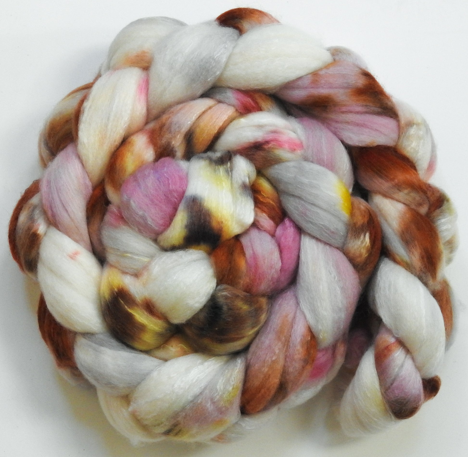 The wool was selected from two family farms on the Falkland islands( UK) and measures an incredible 22 microns. Sheep that are raised organically are not subject to mulesing, and they are not dipped for pesticides. Then blended with silk, it makes for an amazing fiber, you will love spinning!