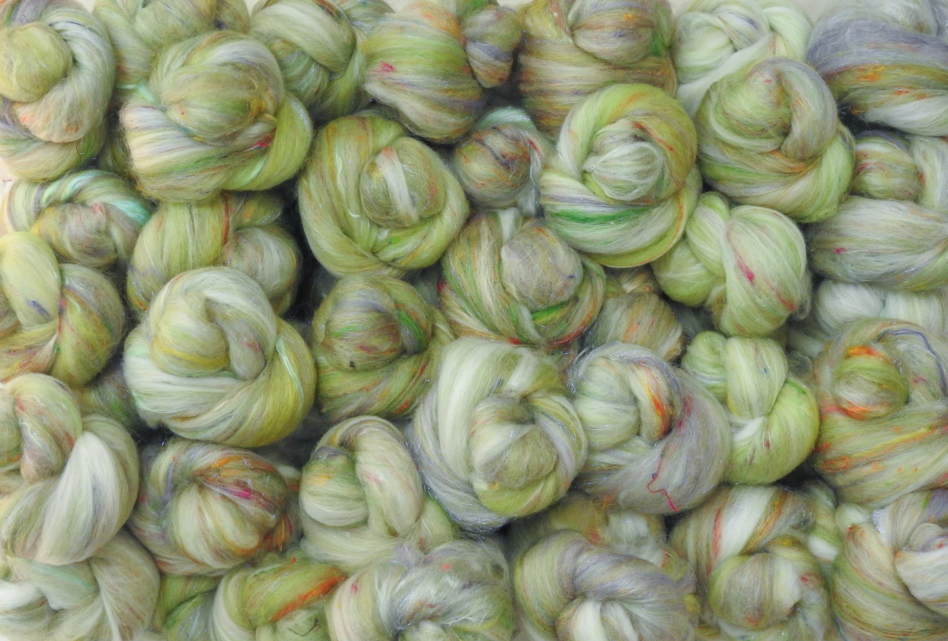 Cotyledon - Sparkle Sticklebatts -( 3.9 oz) RomeldaleX fleece, 14.5 micron merino, polwarth, faux cashmere, silk, sari silk, ANGELINA