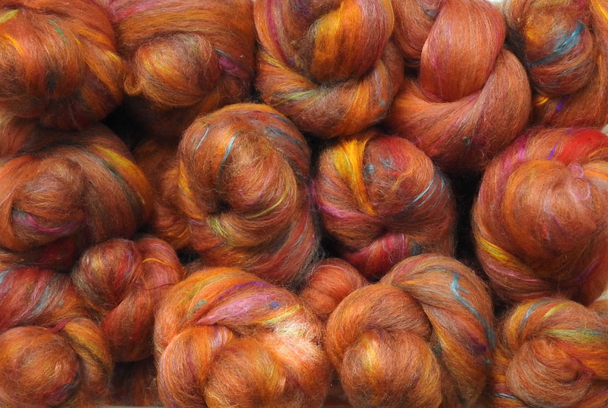 All batts are lovingly blended hand dyed fibers, carded by hand on fine tooth drum carders for your fiber crafting pleasure.