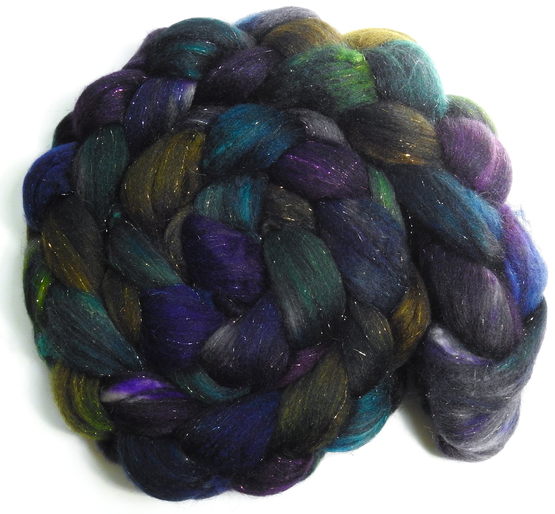 Dragonfly - Batt in a Braid #59- Merino/ Baby Camel/ black Tussah Silk/ Gold Stellina(40/25/25/10)