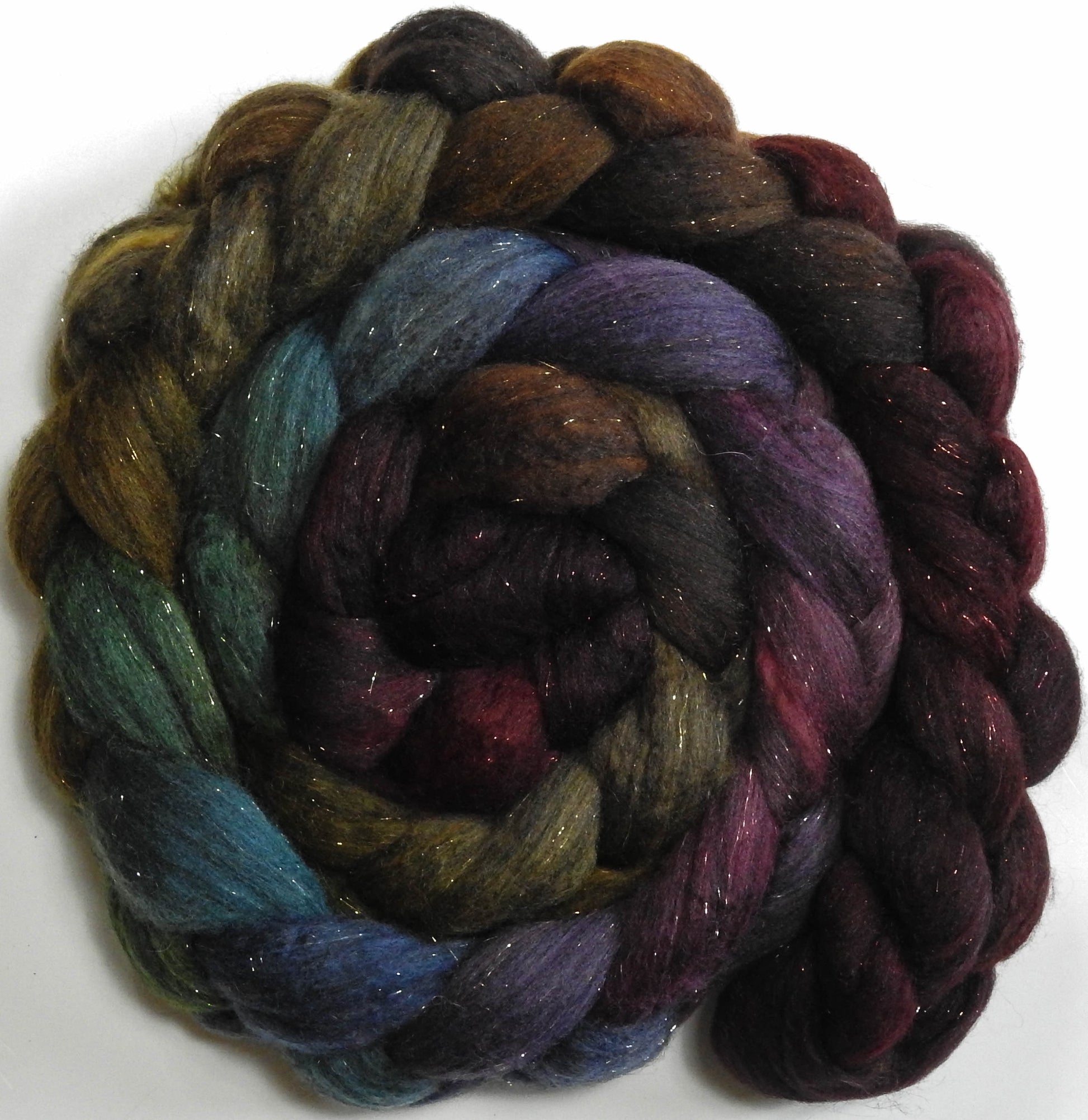 End of the Rainbow (5.5 oz) - Batt in a Braid #59- Merino/ Baby Camel/ black Tussah Silk/ Gold Stellina(40/25/25/10)