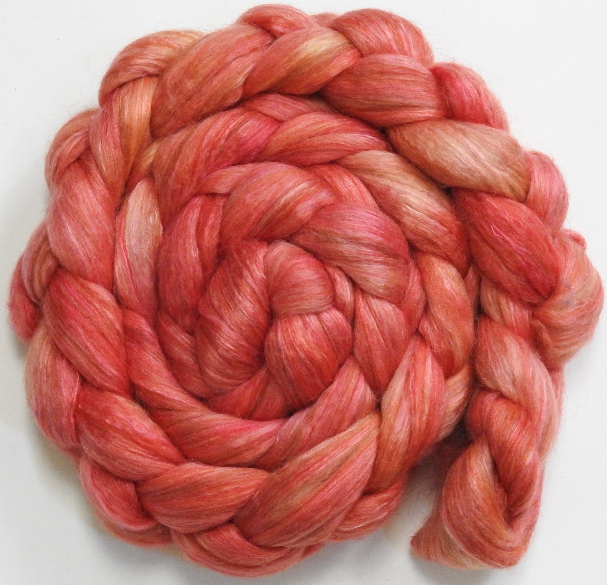 Flamingo (5.6 oz) - Batt in a Braid #31 - Polwarth/ Mulberry Silk / Baby Alpaca / Rainbow Firestar/ Tencel( 40/25/15/10/10)