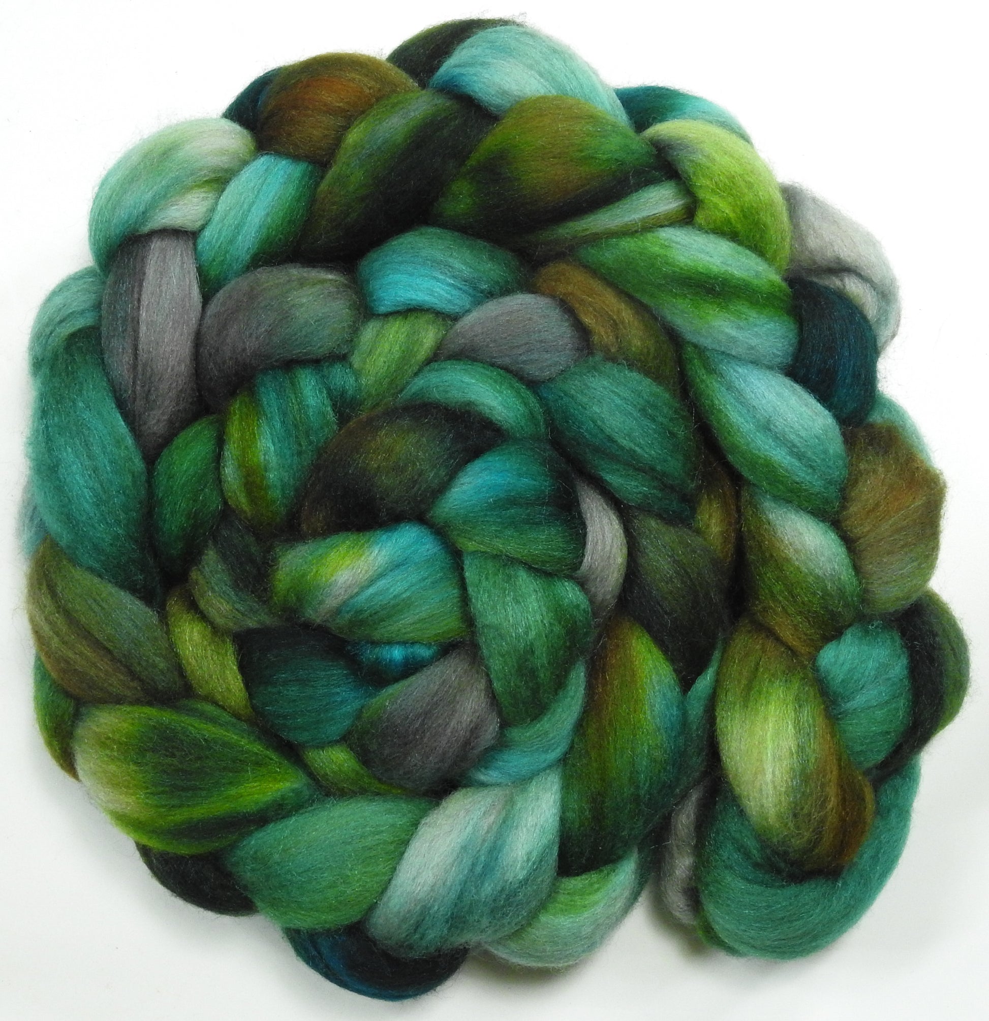 A new deluxe soft blend we're trying out from what's readily available at the mill. The merino is uniformly blended with the silk in this top, giving it an overall sheen.