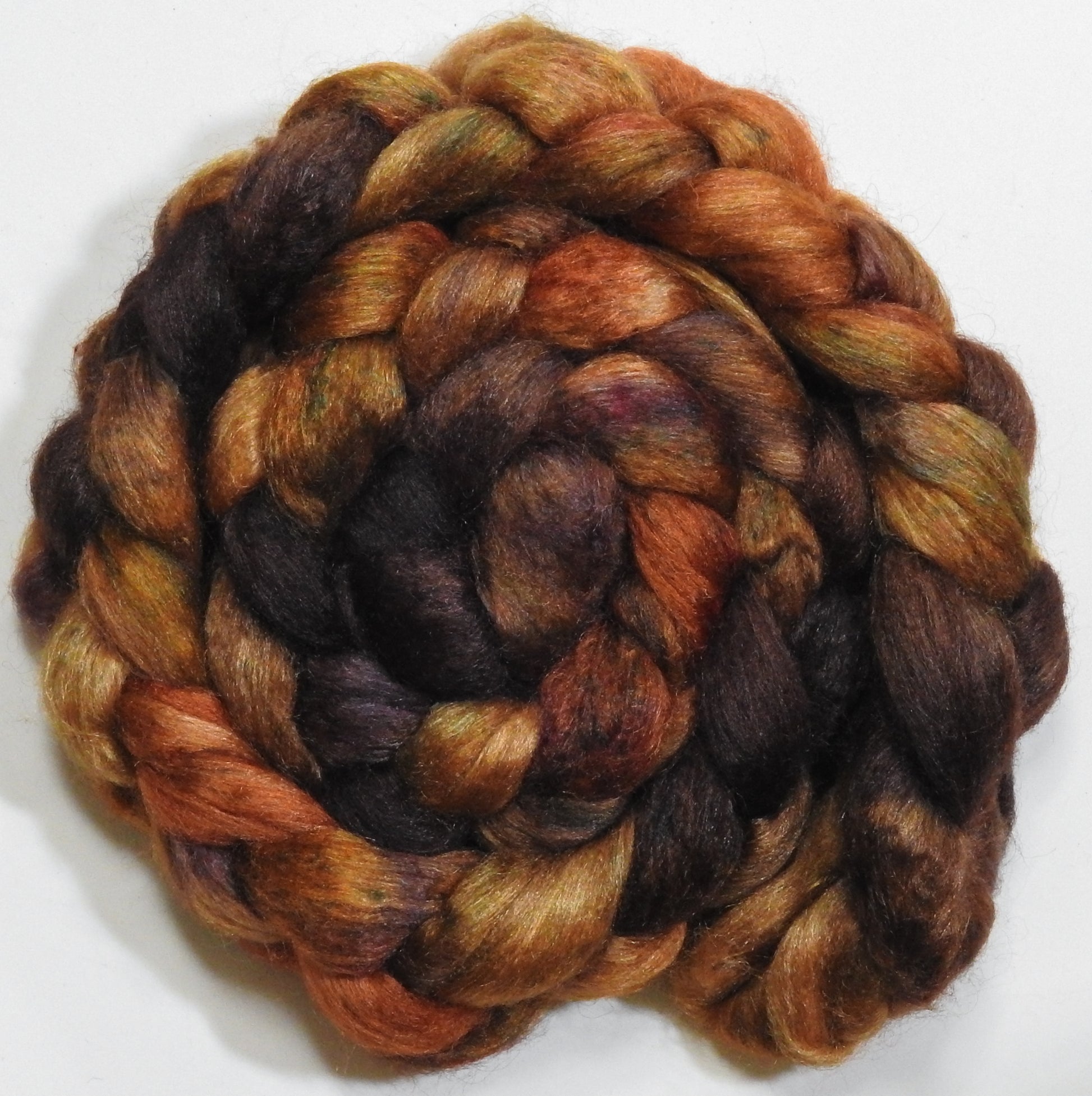 This is a rare blend of exotic and supremely soft Qiviut fiber and Tussah Silk that will really knock your socks off! Qiviut fiber comes from the undercoat of the Alaskan Musk Ox, and is known for its exceptional warmth. This light and fluffy fiber ranges from 14-16 microns. It's very unusual to find it in combed top form, but this is a special product we've sourced from Ashenflock on Etsy, who had it custom milled.