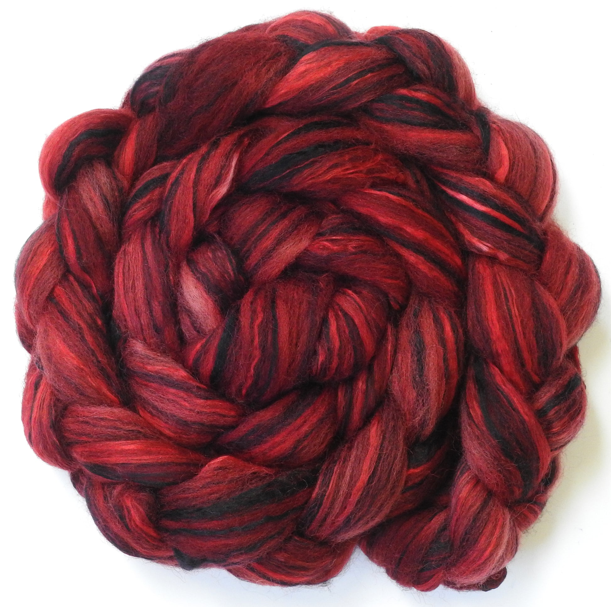 Holly Berry (5.3 oz) - Batt in a Braid #55- Shetland/ Mulberry Silk/ Black Bamboo (50/25/25)