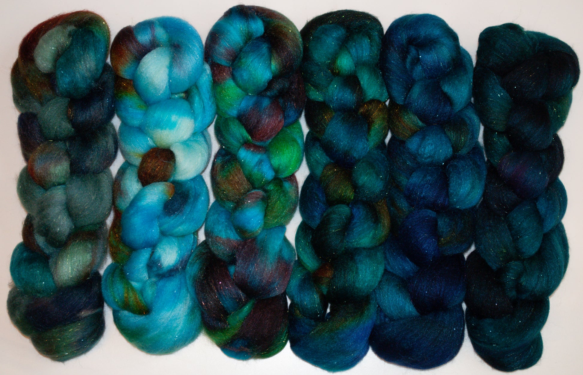 Hope Springs Eternal-Gradient Braid Set - (8.5 oz.) Batt in a Braid #58- Superfine Merino/Tussah Silk/ Gold Stellina (65/25/10)