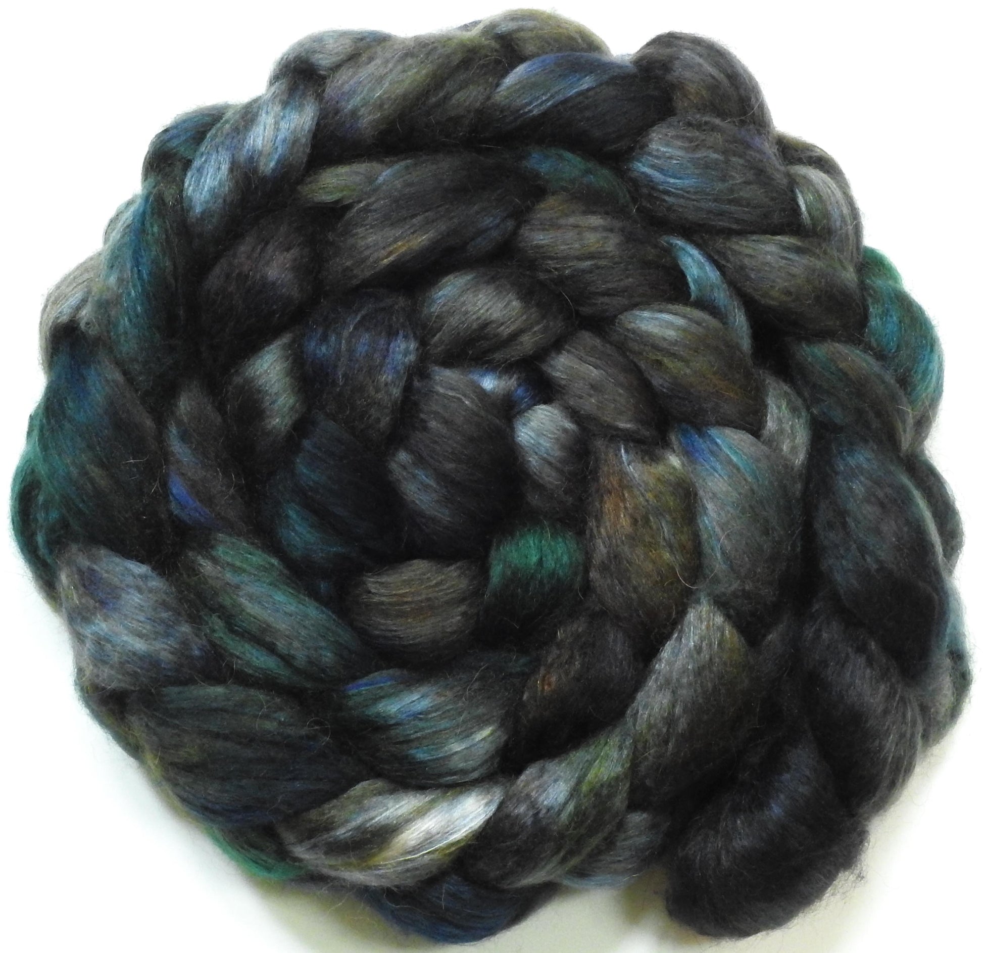 This is a super deluxe, incredibly soft and luxurious fiber. The natural fawn-colored camel is complemented by 50% tussah silk, which gives it a rich sheen. This fiber takes dye beautifully and will be a pleasure to wear next to the skin. It has been noted to be easier to spin this type of fiber with support spindles, due to the short staple of the camel, although the silk somewhat compensates for that by its longer staple length.