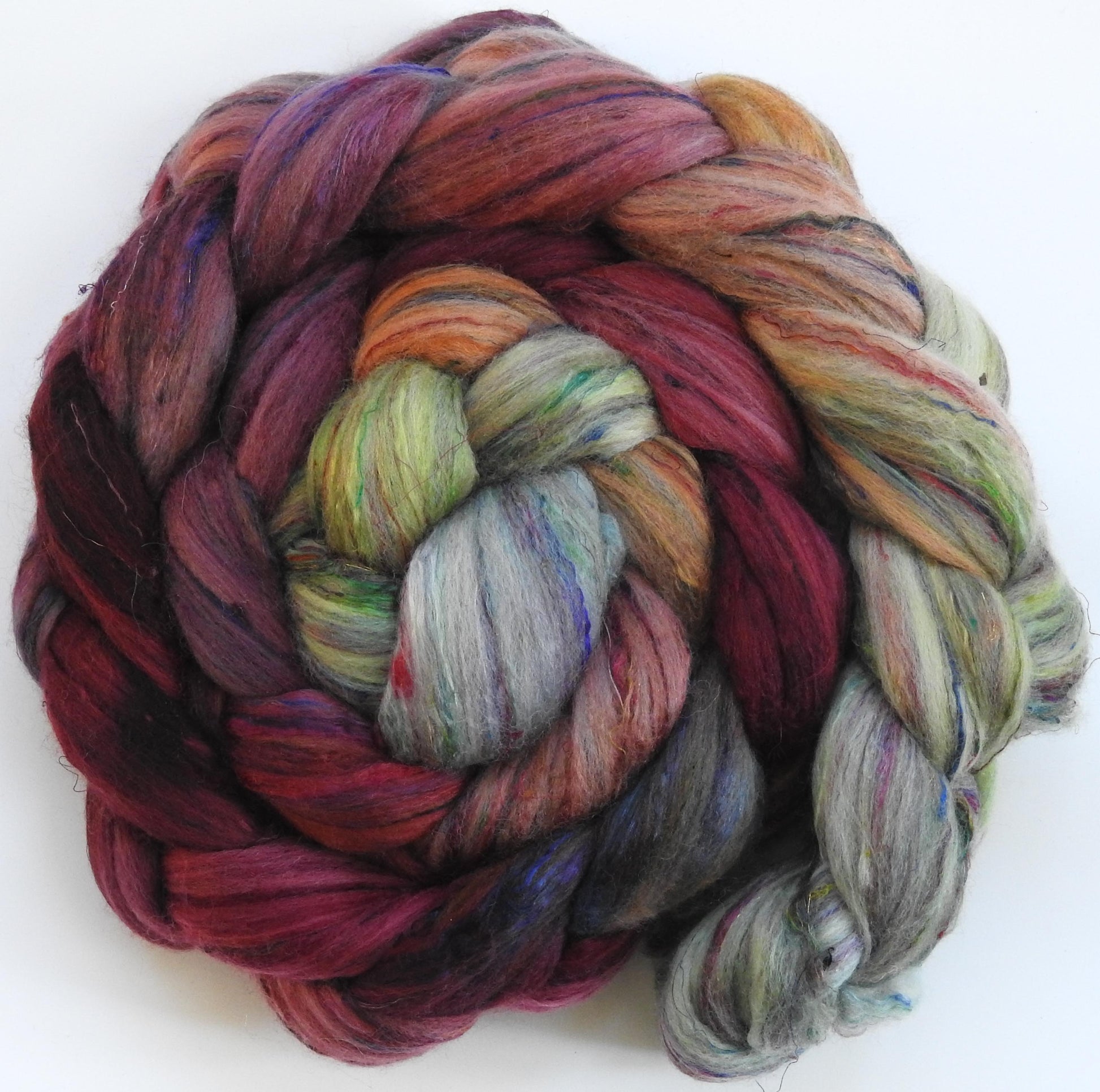 Icelandic Poppies (5.6 oz)- Batt in a Braid #39 -Falkland Merino/ Mulberry Silk / Sari Silk (50/25/25)