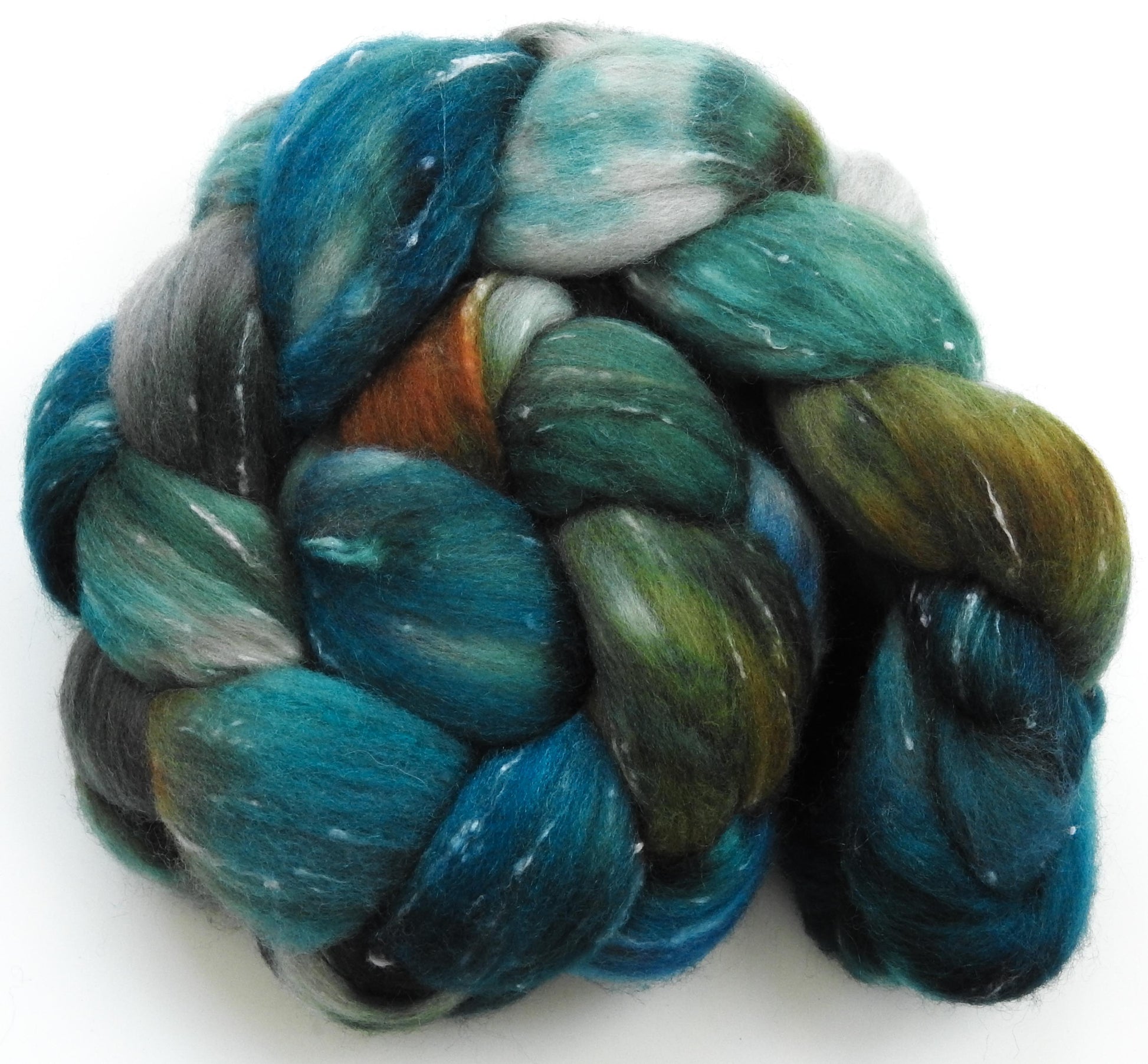 Kraken- Batt in a Braid #42 -(4.4 oz) Polwarth/ Tweed Blend / Peduncle&Tussah Silk( 50/25/25)