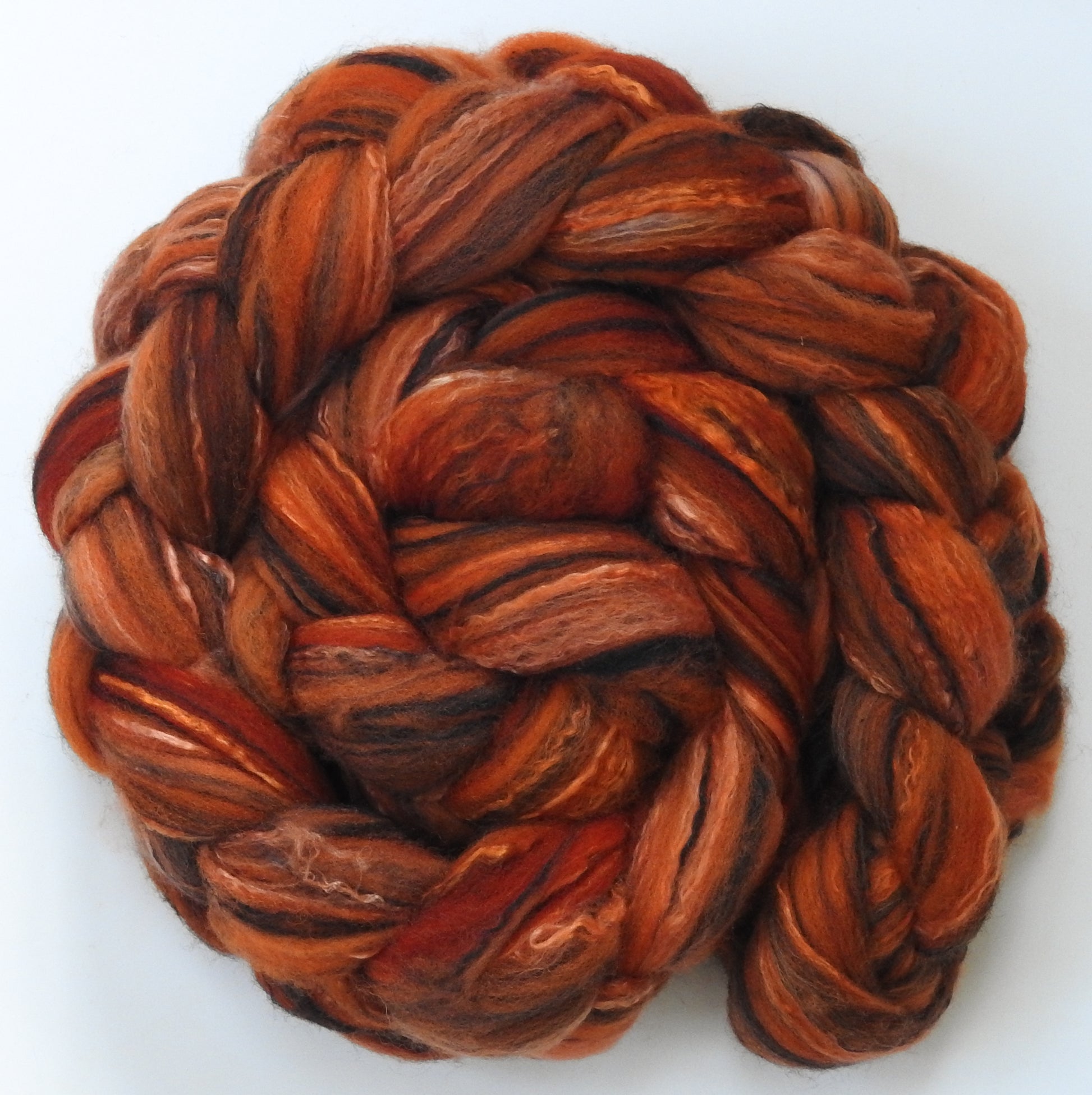 Kumquat - Batt in a Braid #30- Charollais/ Rambouillet / Black tussah /Mulberry silk (40/40/10/10)