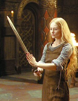 Éowyn is a noblewoman of Rohan, niece of King Théoden and sister to Éomer. Raised among warriors, she felt trapped by the expectations placed on her as a woman, yearning for glory and freedom. Her courage and determination lead her to disguise herself as a man and ride into battle where she defeated the Witch-king of Angmar, fulfilling the prophecy that no man could slay him.