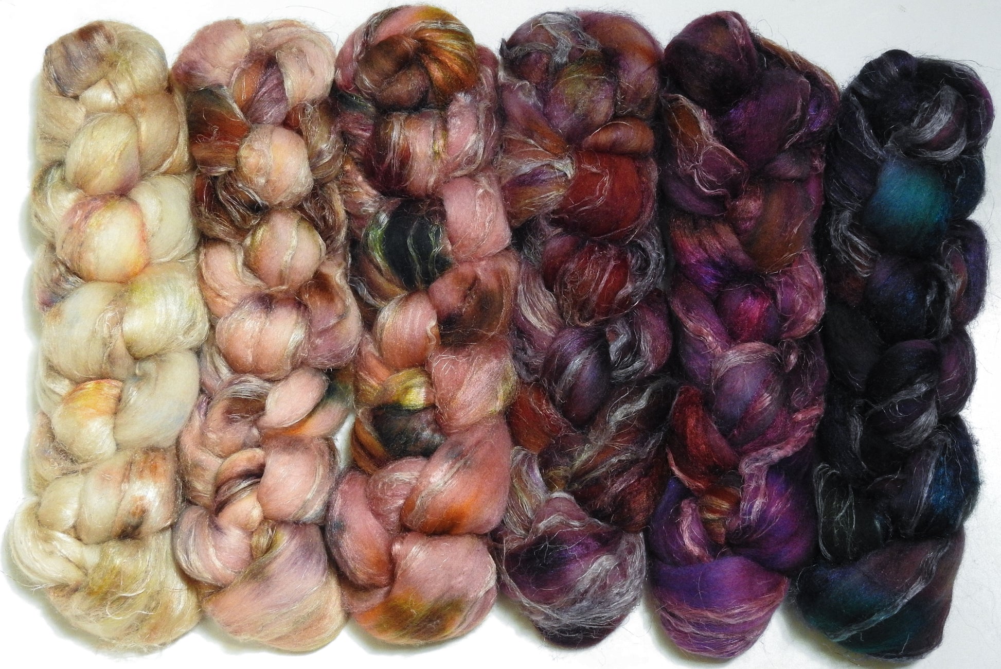 A fun textured blend we're trying out from what's readily available at the mill. Be prepared to pre-draft, and the flax will soften the more its handled!