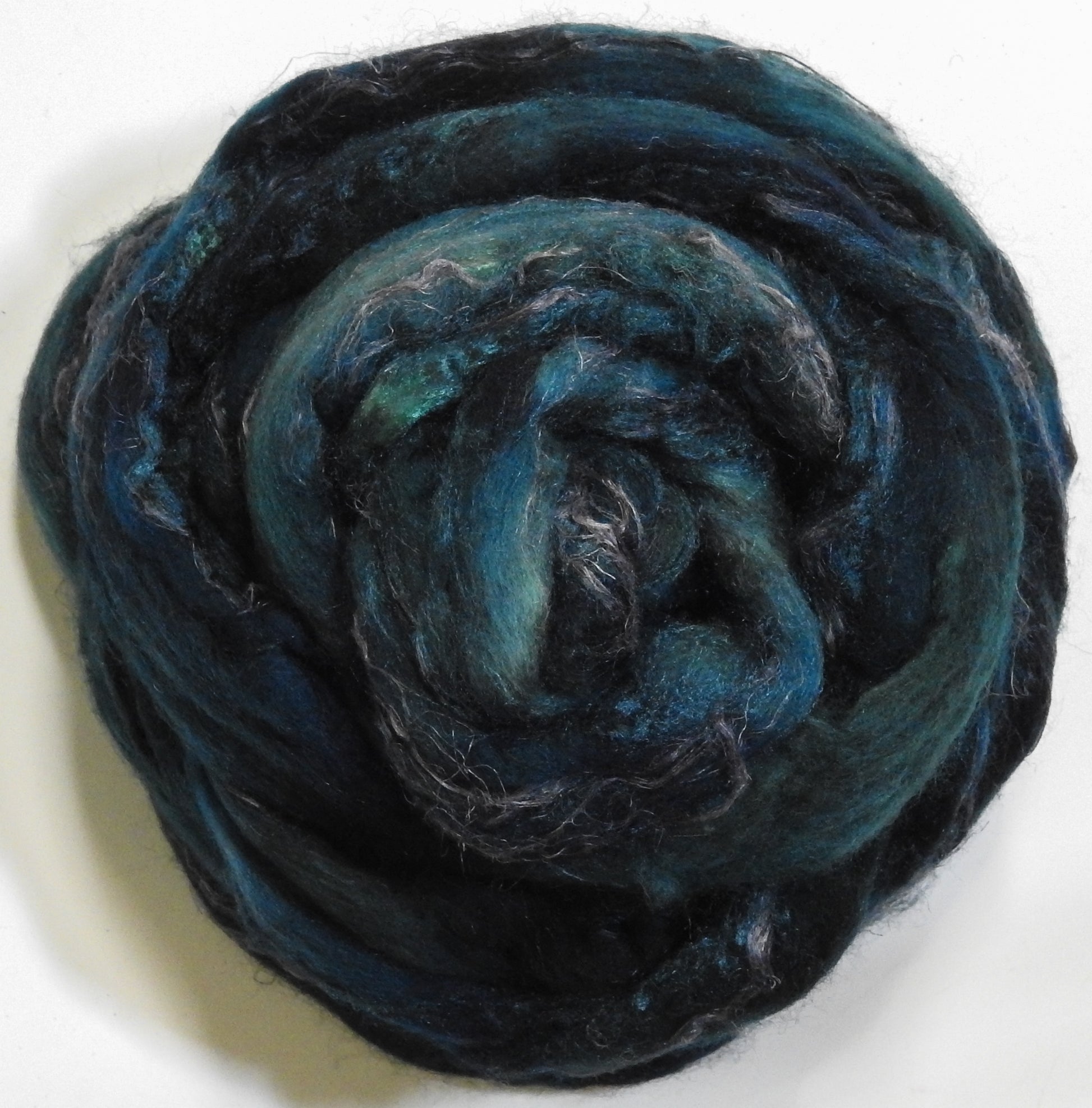 A fun textured blend we get from what's readily available at the mill. Be prepared to pre-draft, and the flax will soften the more its handled!