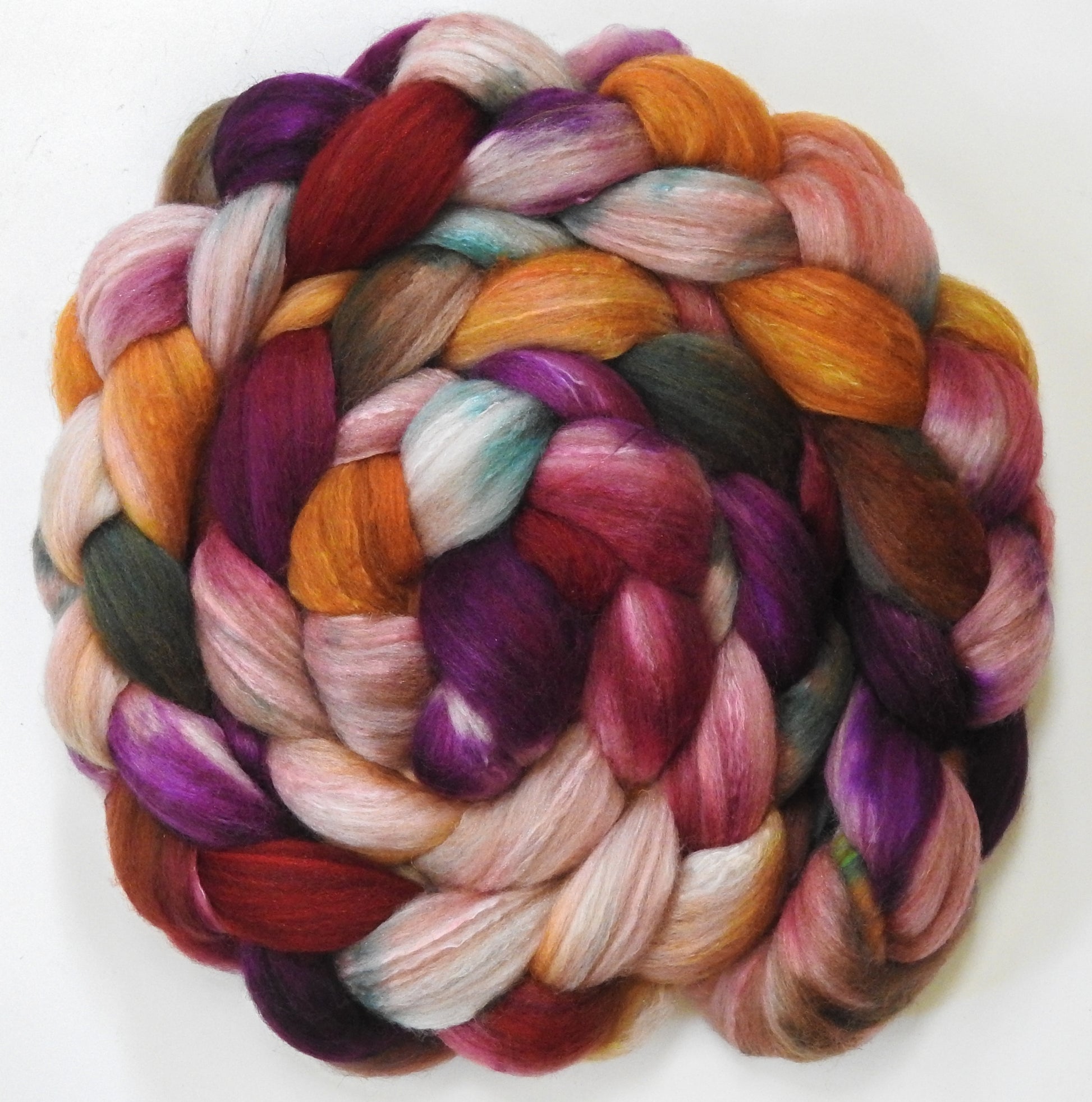 Lobelia Sackville-Baggins (5.7 oz) - Batt in a Braid #7 - Polwarth/ Manx / Mulberry silk/ Firestar (30/30/30/10)