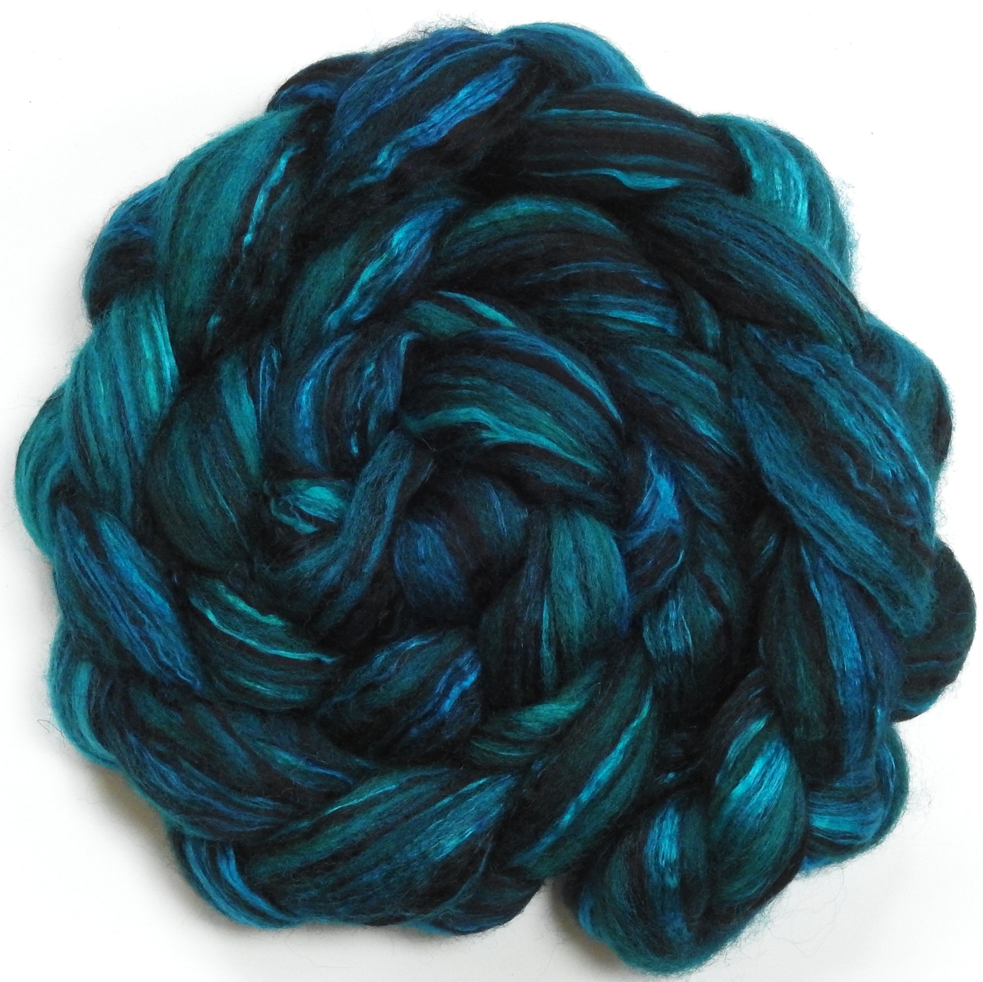 Mallard (5.3 oz) - Batt in a Braid #55- Shetland/ Mulberry Silk/ Black Bamboo (50/25/25)