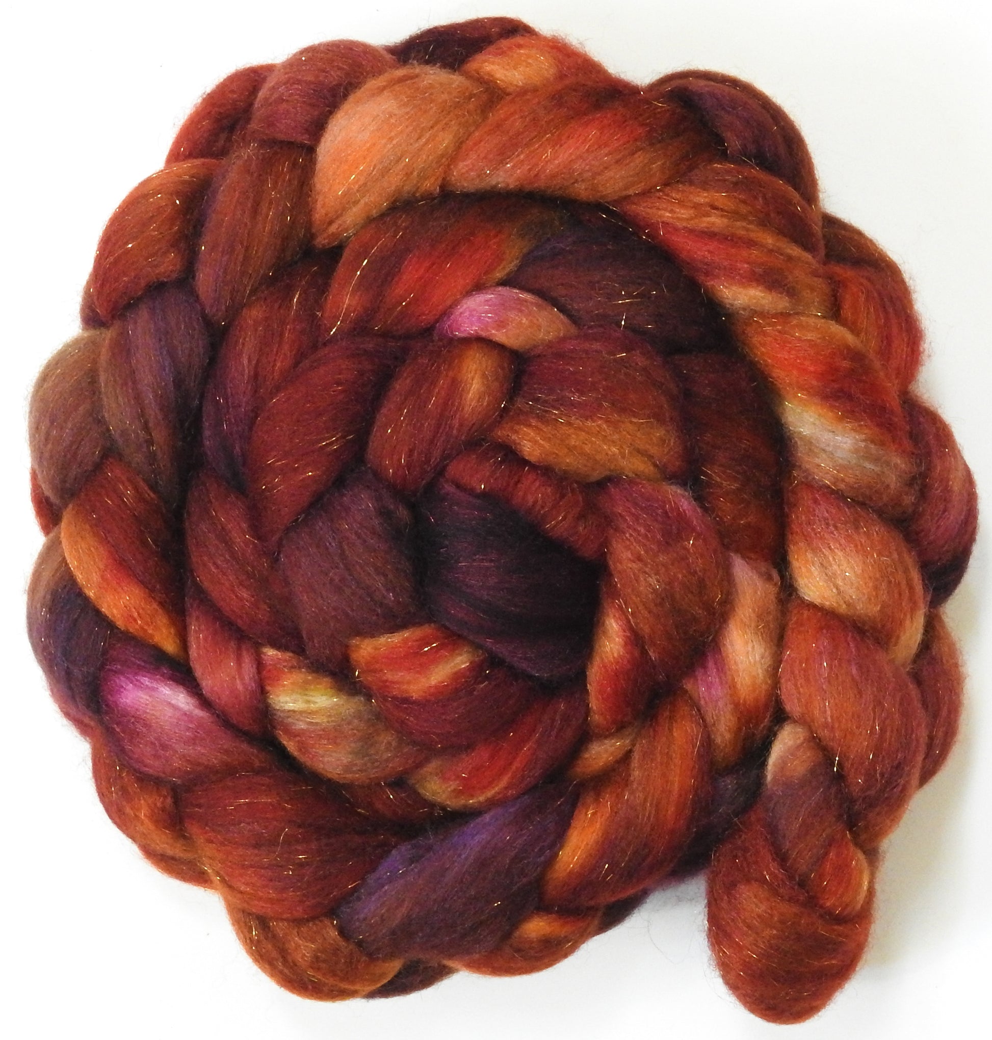 Meduseld (5.7 oz) - Batt in a Braid #67 - Polwarth/Baby Camel/Tussah Silk/ Gold Stellina (40/25/25/10)