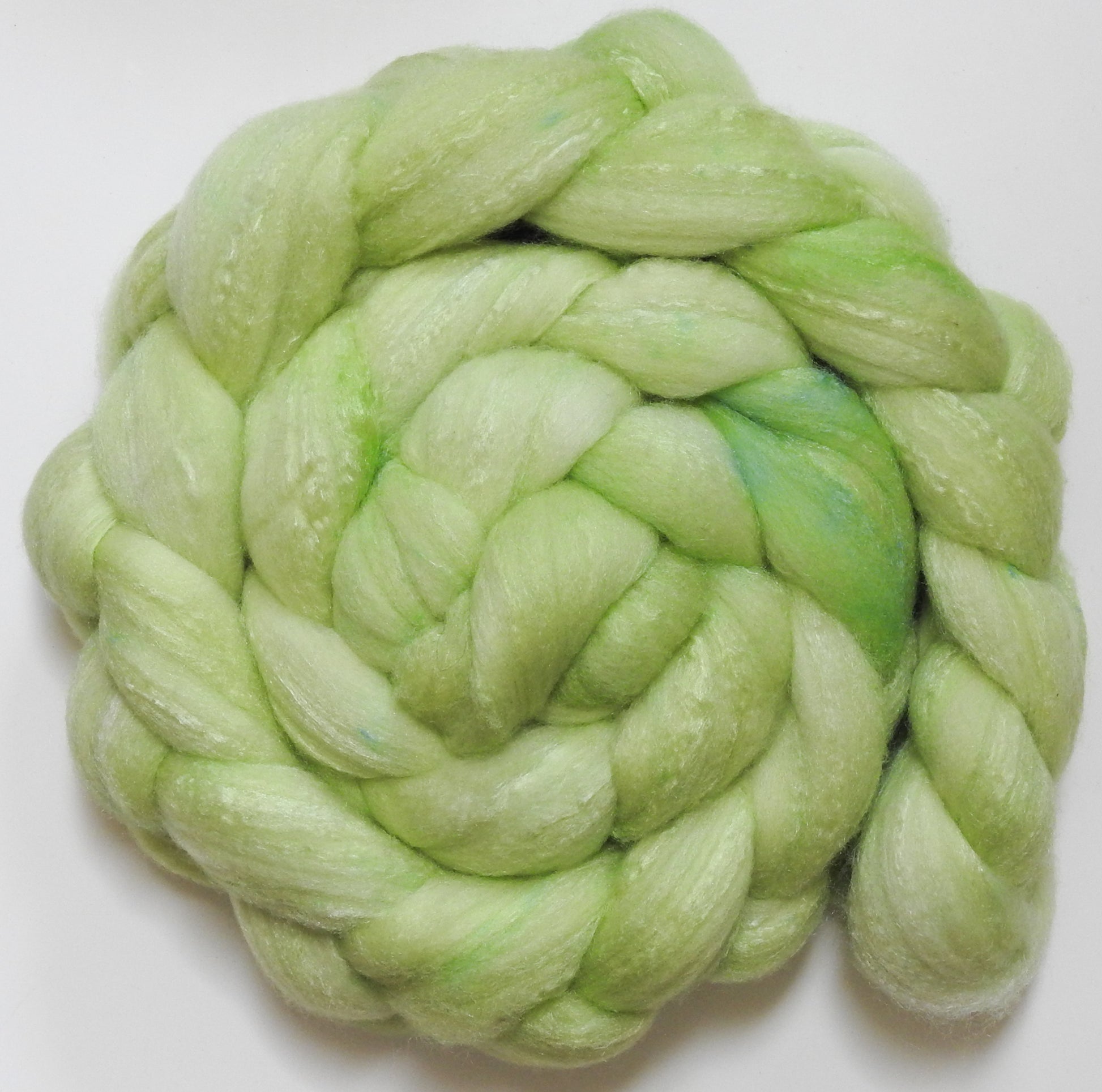 The premium wool in this small batch blend comes from a ranch committed to Climate-Beneficial farming practices for their pure-bred Rambouillet flock of sheep. The mill also spins yarn for one of the owners and can attest to the high quality of the wool which averages right around a soft 22 microns. There are some very narrow streaks of silk in the roving to help show the contrast with the shine of the silk after dying. .