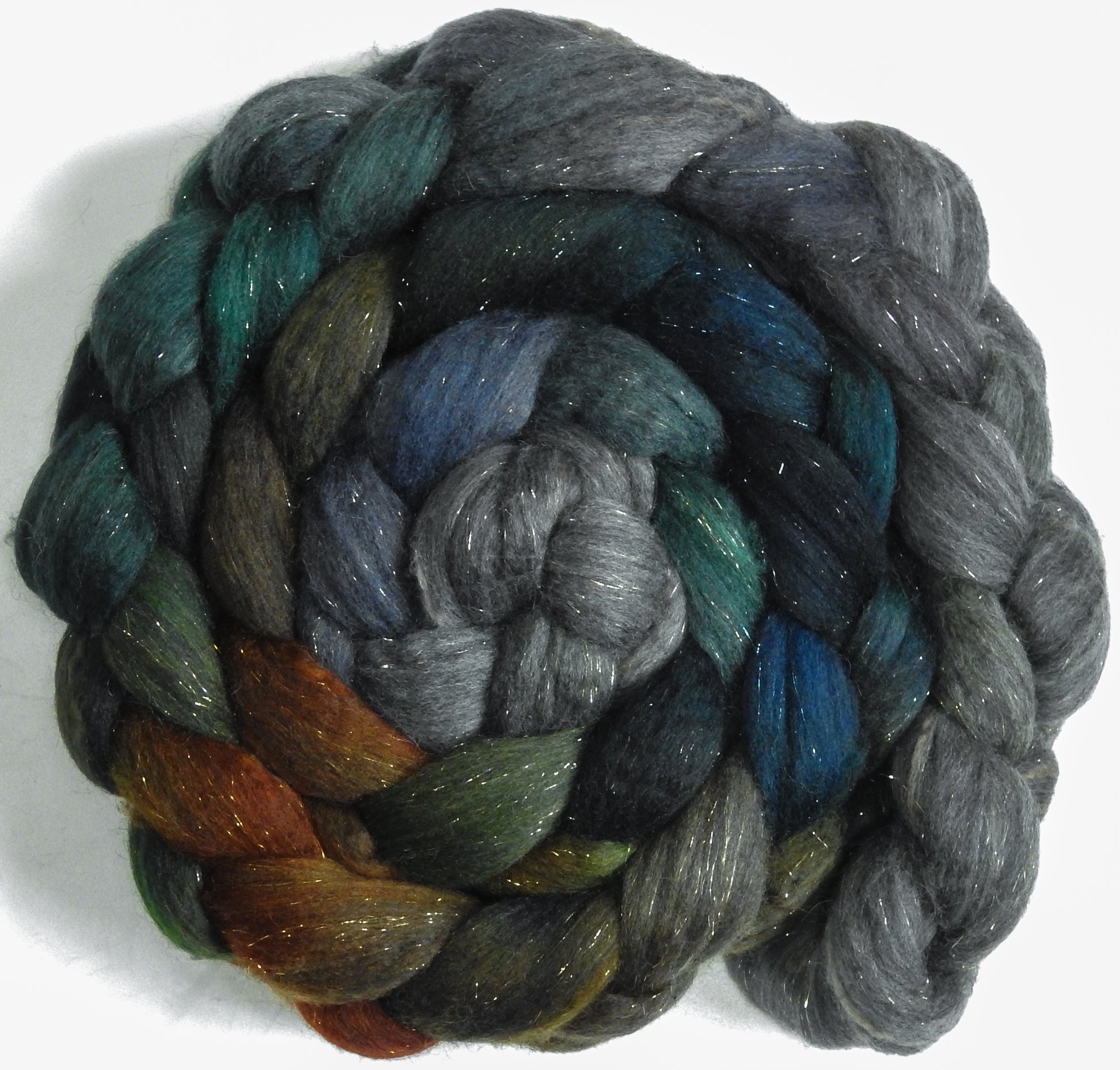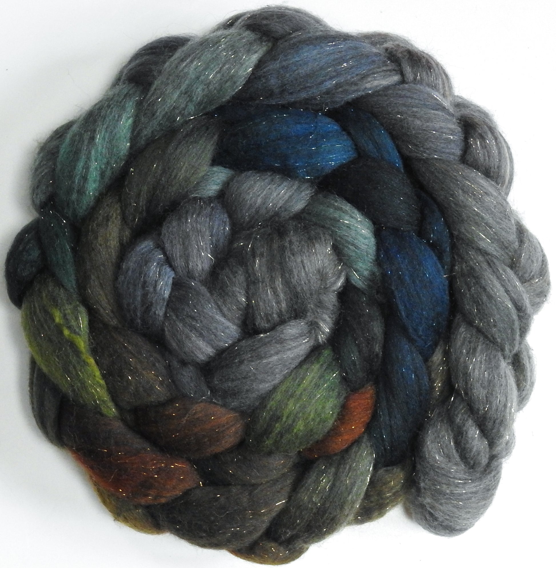Merpeople (5.2 oz) - Batt in a Braid #59- Merino/ Baby Camel/ black Tussah Silk/ Gold Stellina(40/25/25/10)