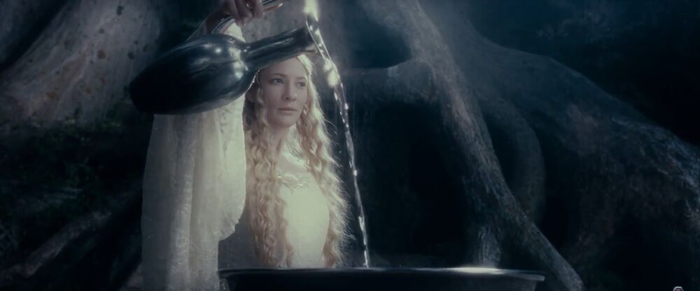 The Mirror of Galadriel is a basin filled with water in which one could see far away visions of the past, present, and future. It was used by Galadriel, the Elven Lady of Lórien.