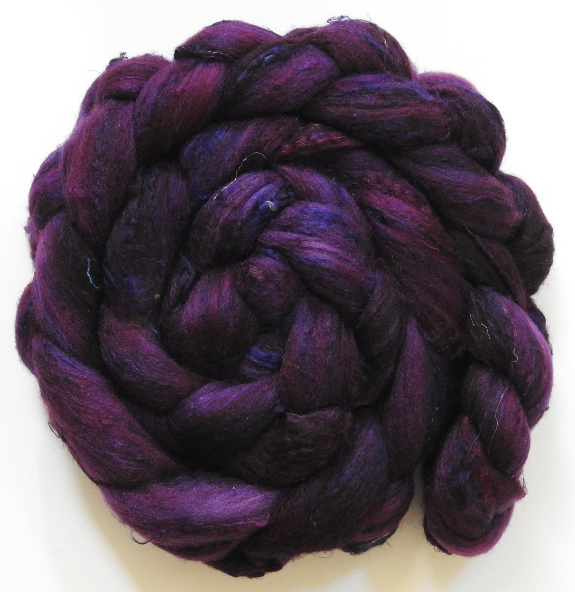Mulberry (5.6 oz) - Batt in a Braid #65 - Rambouillet/ Cormo / Sari silk/ Tussah silk (40/25/25/10)