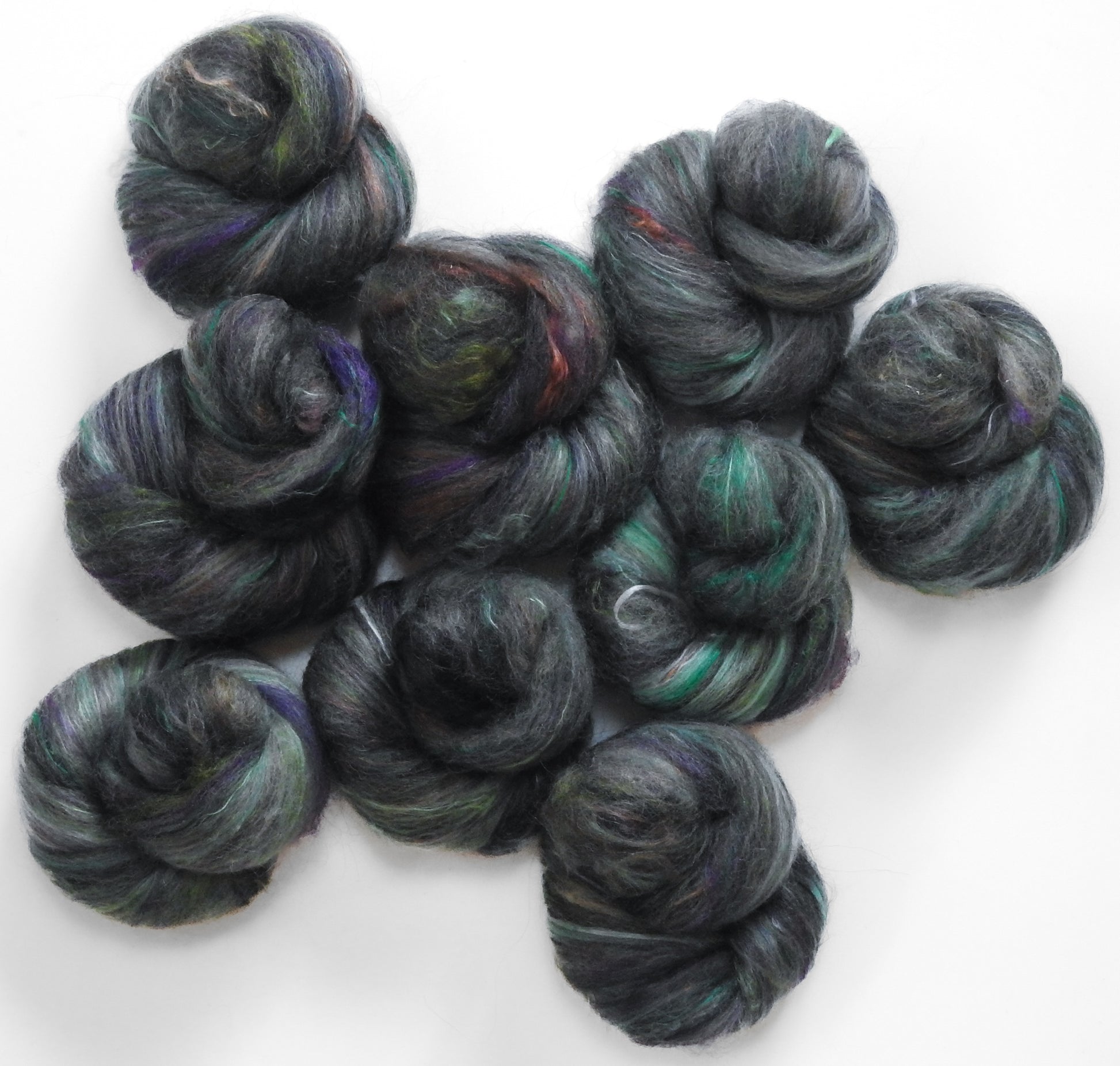 All batts are lovingly blended hand dyed fibers, carded by hand on fine tooth drum carders for your fiber crafting pleasure.