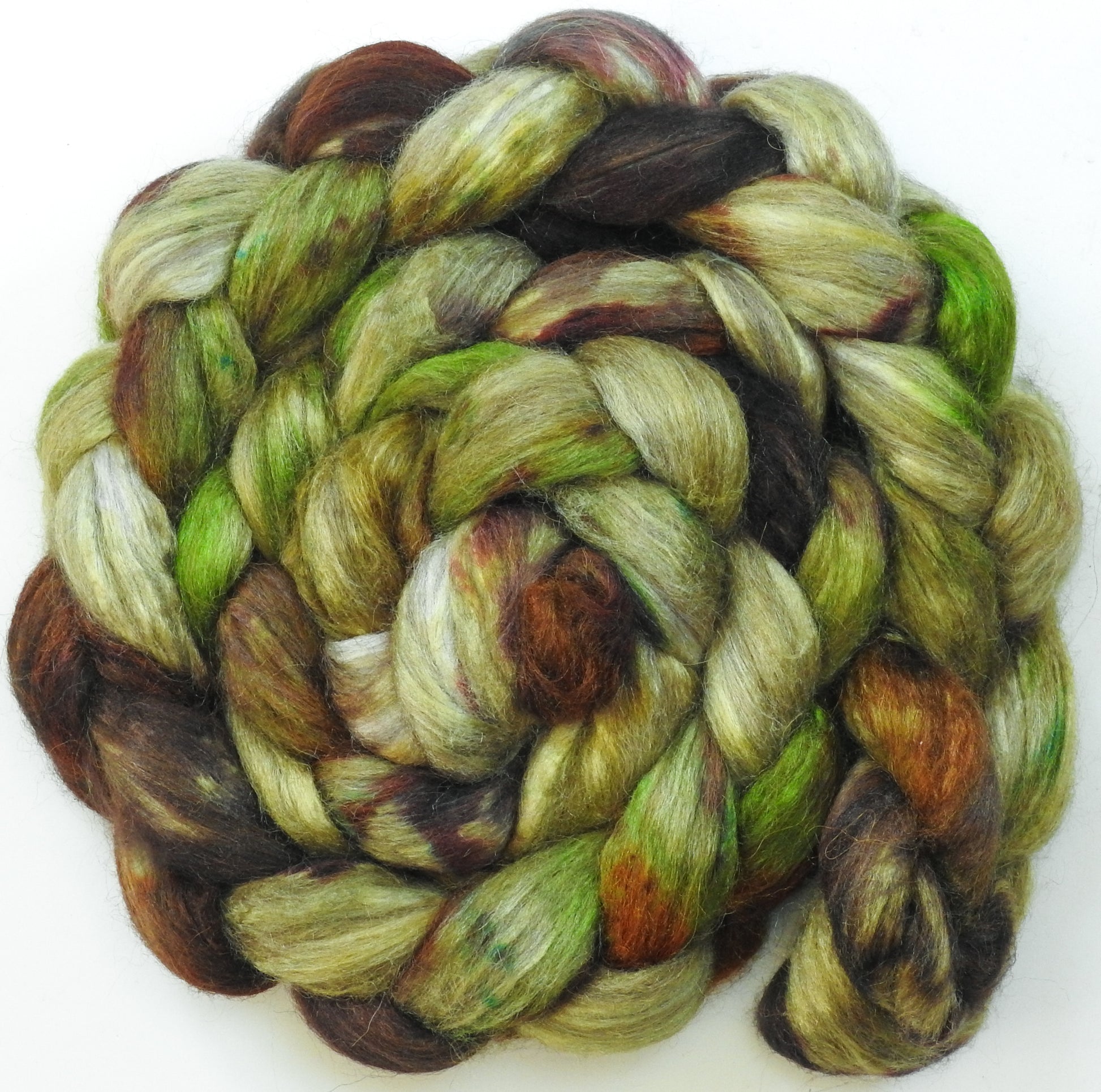 A soft and silky blend we're trying out from what's readily available at the mill. Subtle natural grey alpaca blended with tussah silk gives this top a beautiful sheen!