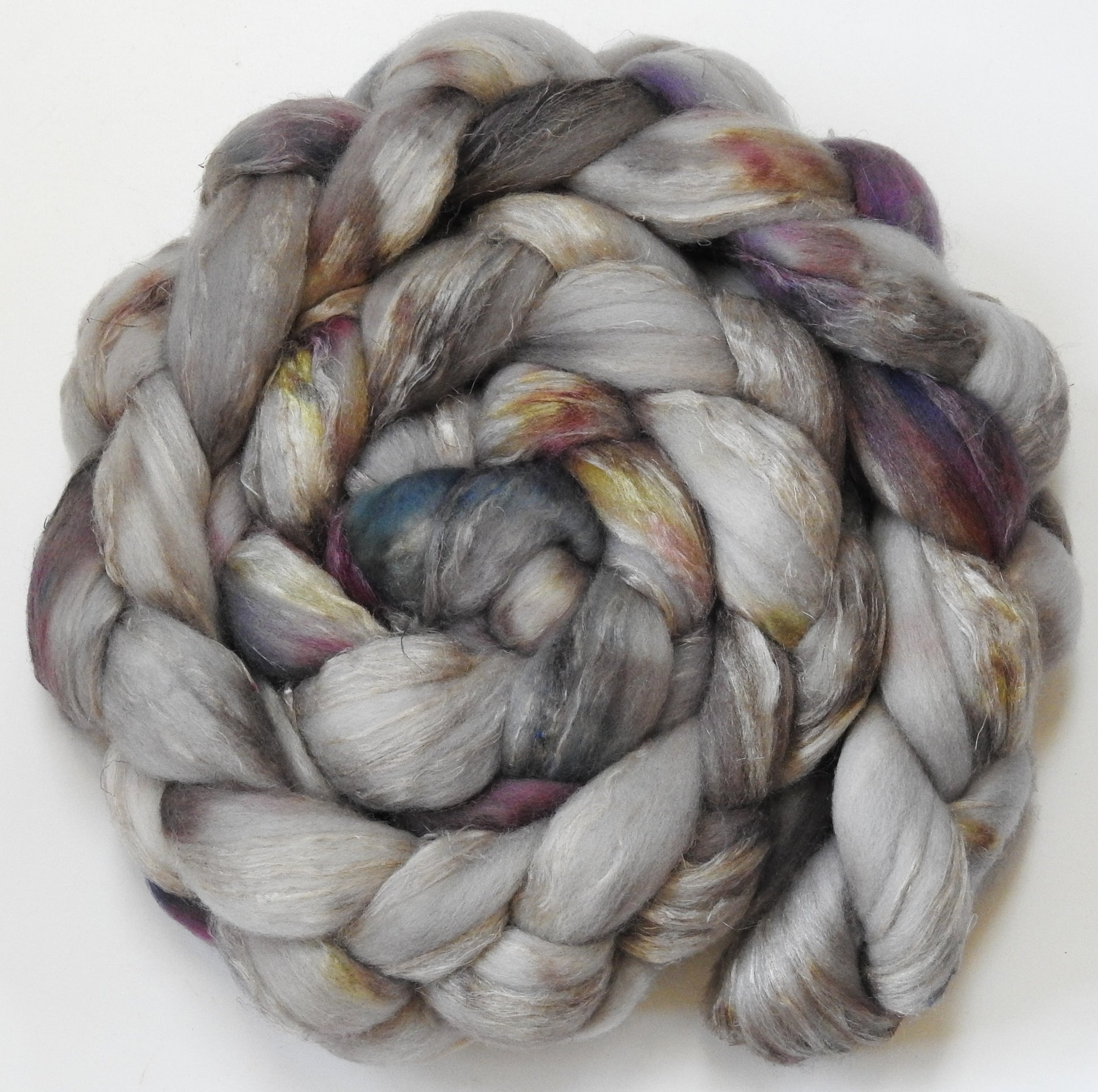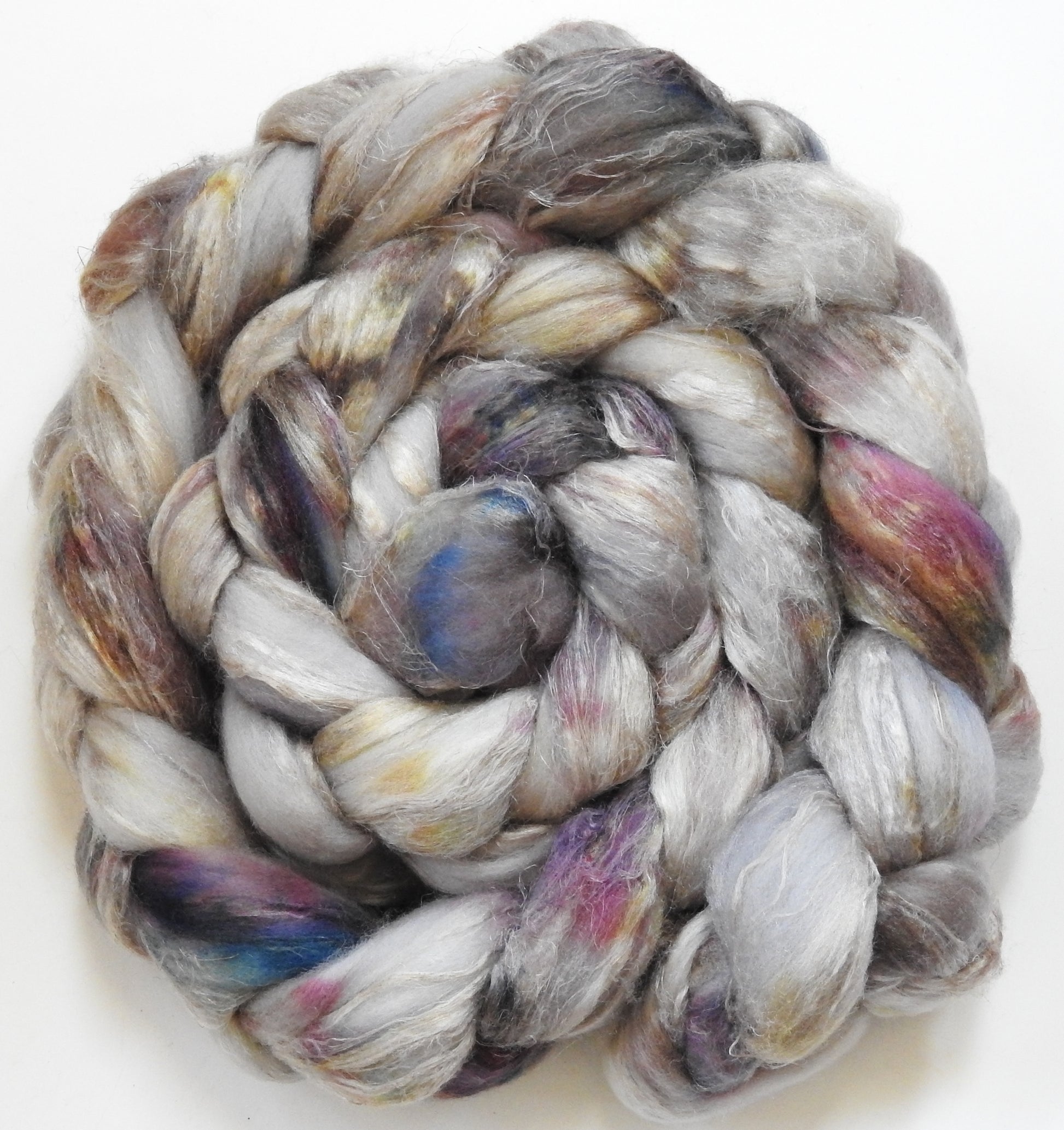A fun textured blend we're trying out from what's readily available at the mill. Be prepared to pre-draft, and the flax will soften the more its handled!