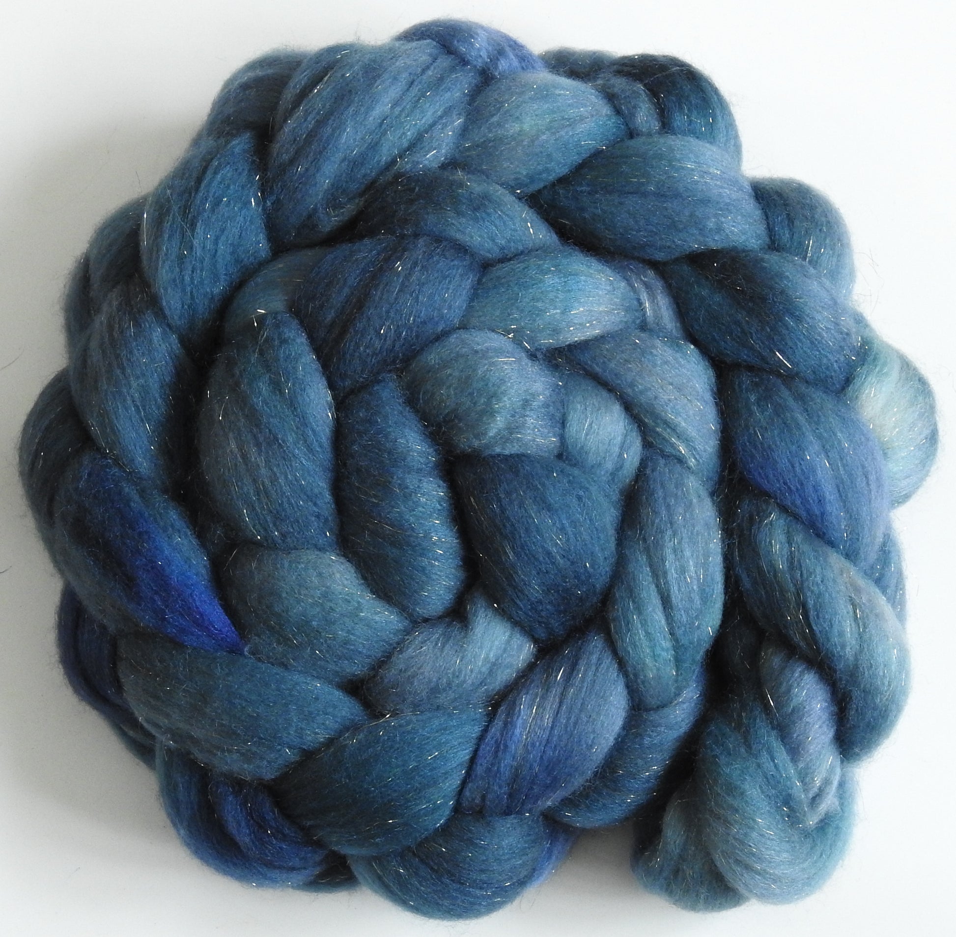 Porpoise(5.6 oz) Batt in a Braid #58-Superfine Merino/ Tussah silk/ Gold Stellina(65/25/10)