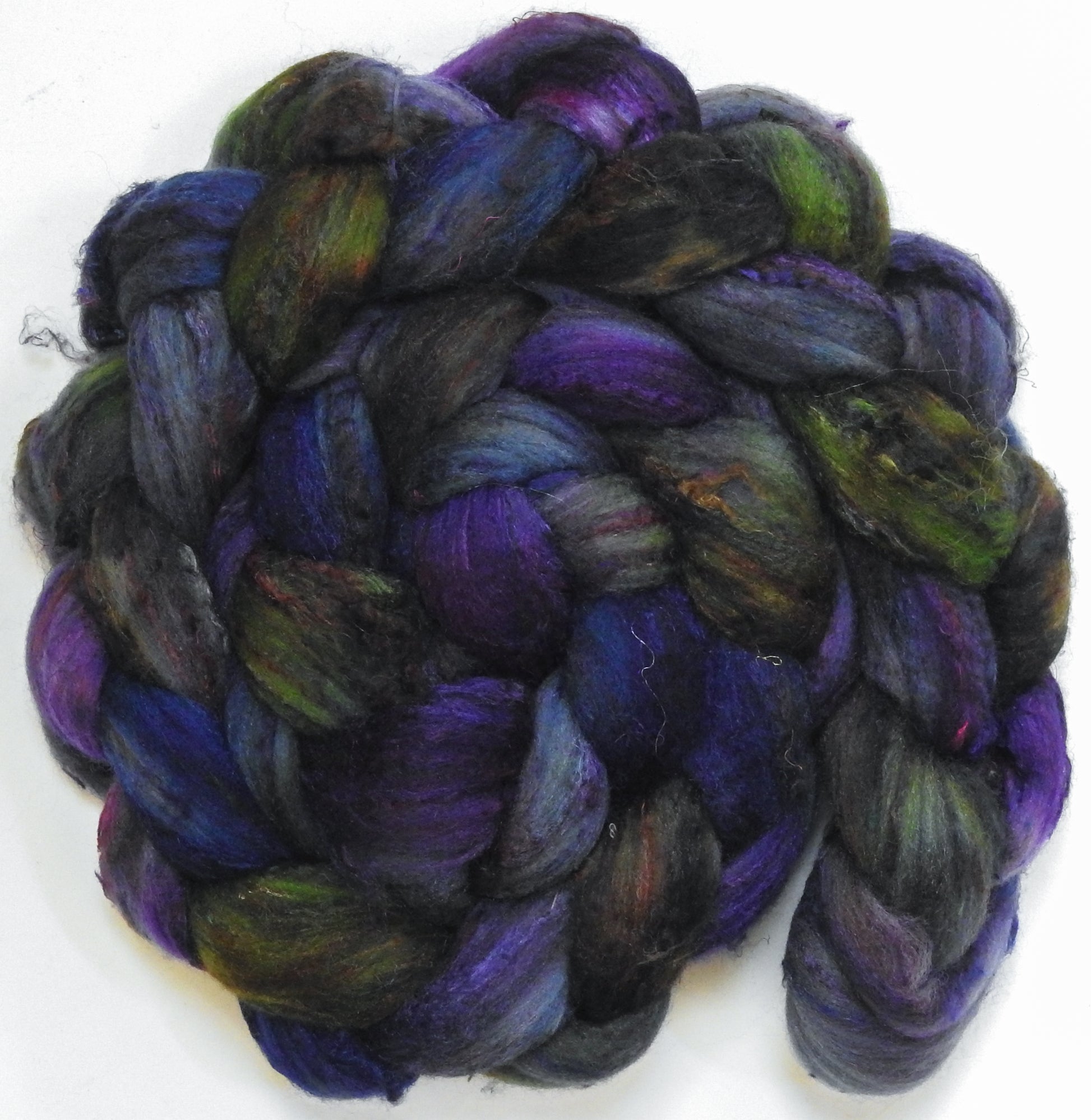 Questing Beast (5.7 oz) - Batt in a Braid #65 - Rambouillet/ Cormo / Sari silk/ Tussah silk (40/25/25/10)