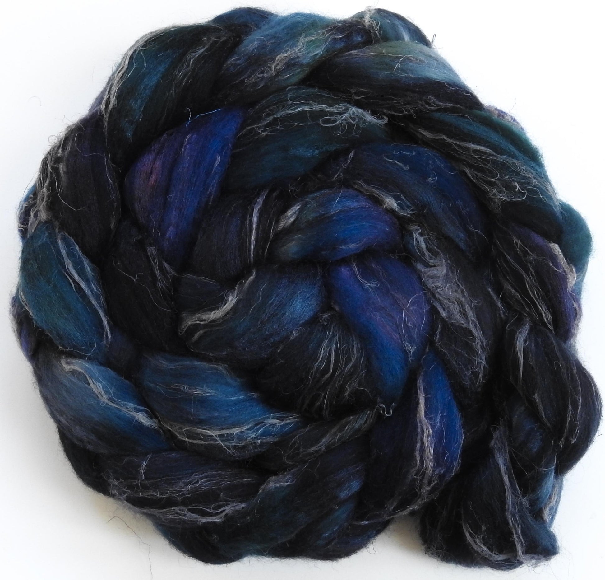 A fun textured blend we're trying out from what's readily available at the mill. Be prepared to pre-draft, and the flax will soften the more its handled!