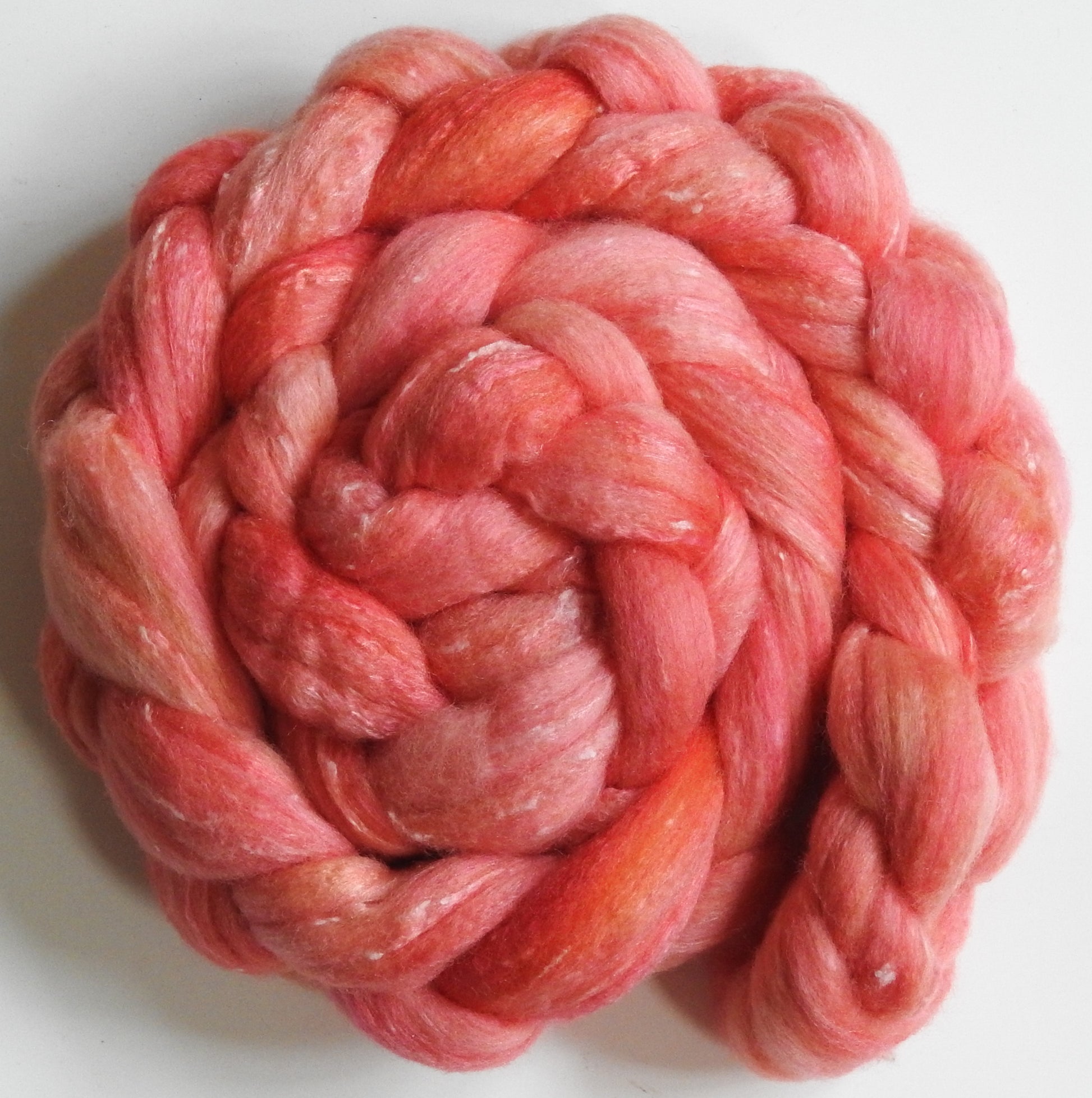 Sugar Coral-(5.6 oz) Batt in a Braid #49- Polwarth/Silk/ Tweed (50/25/25)