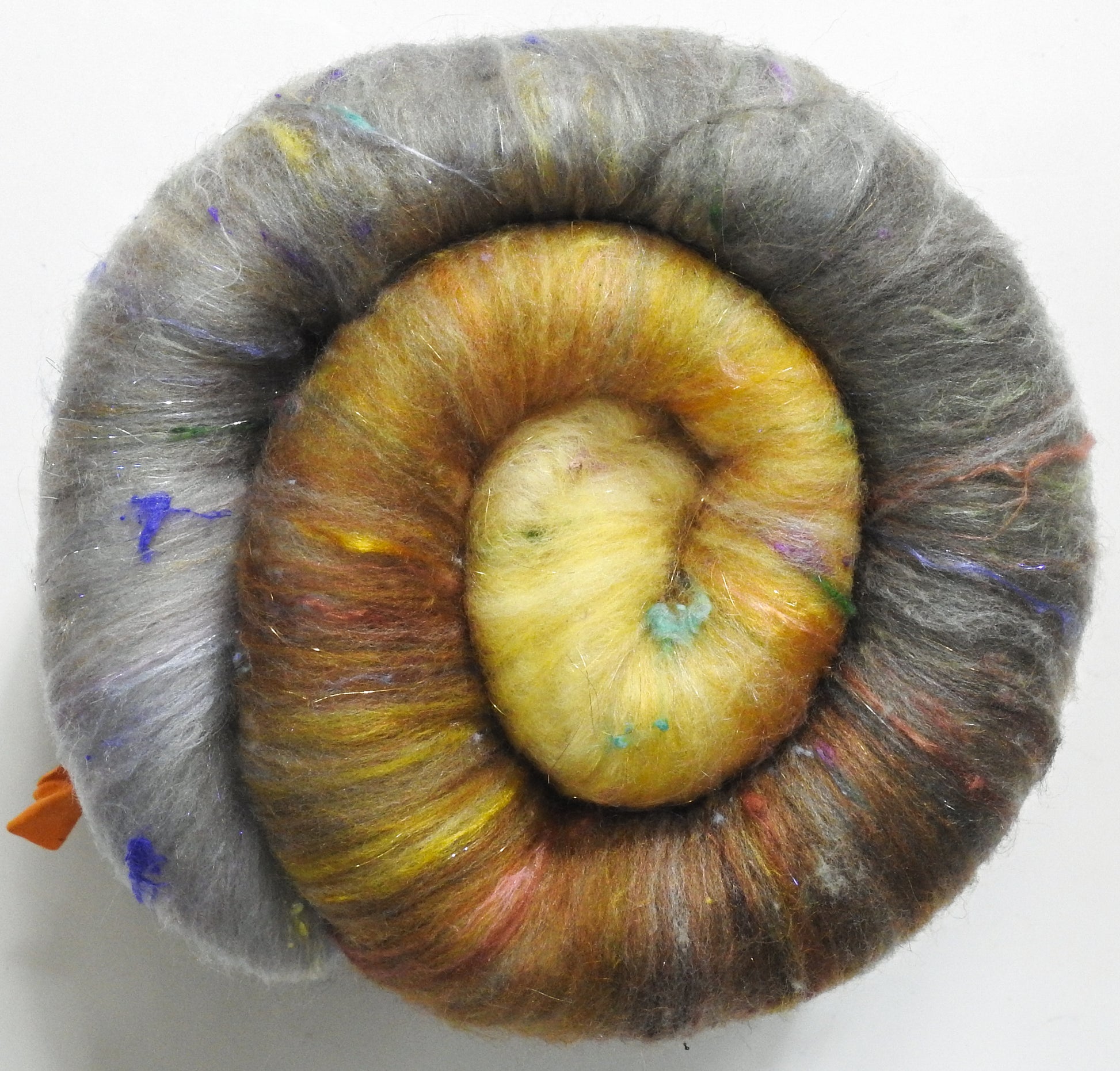 The Two Trees of Valinor (4 oz) -Sparkle and Non-Sparkle Roly-poly batt -Haunui fleece; merino, silk, bamboo, silk noil (Angelina in the sparkle variety)