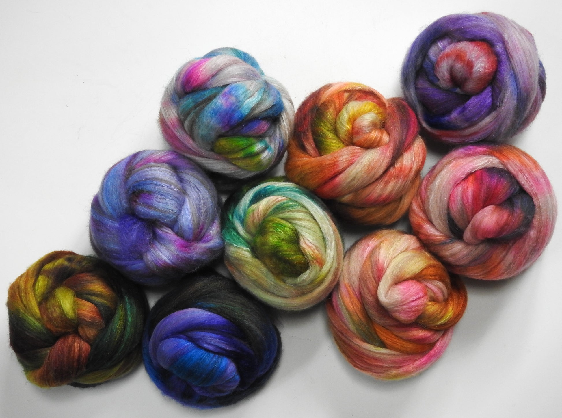 Tuscany in Bloom - Dyed Gradient Set - Batt in a Braid #7 - Polwarth/ Manx / Mulberry silk/ Firestar (30/30/30/10)