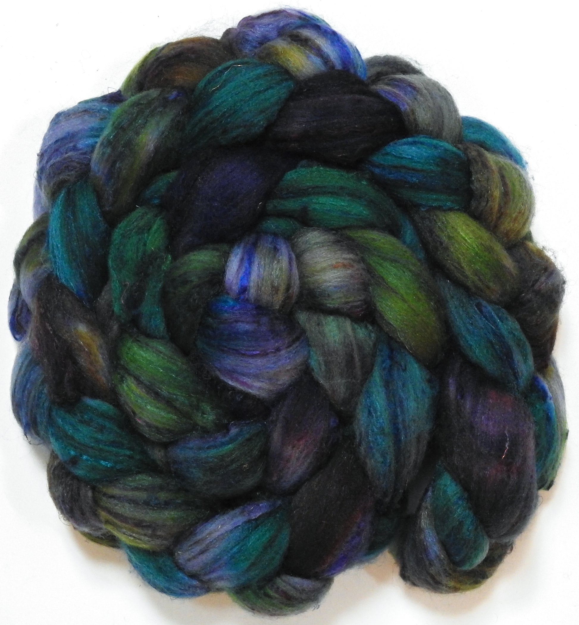 Watcher in the Water (5.6 oz) - Batt in a Braid #65 - Rambouillet/ Cormo / Sari silk/ Tussah silk (40/25/25/10)