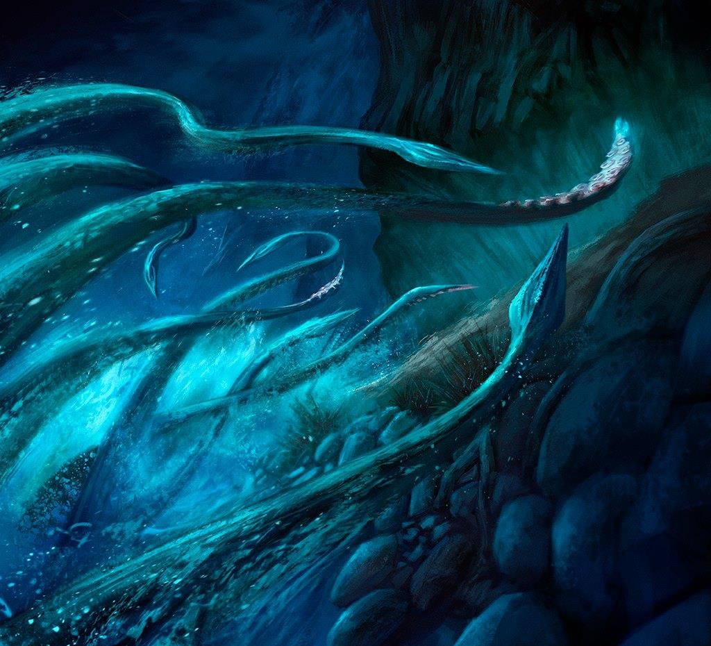 The Watcher in the Water is a mysterious water-monster that lurks in a dark lake beneath the rocky cliffs of the western Walls of Moria. Although its full shape is unknown, the Watcher is described as having many long, sinuous, pale-green, luminous tentacles.